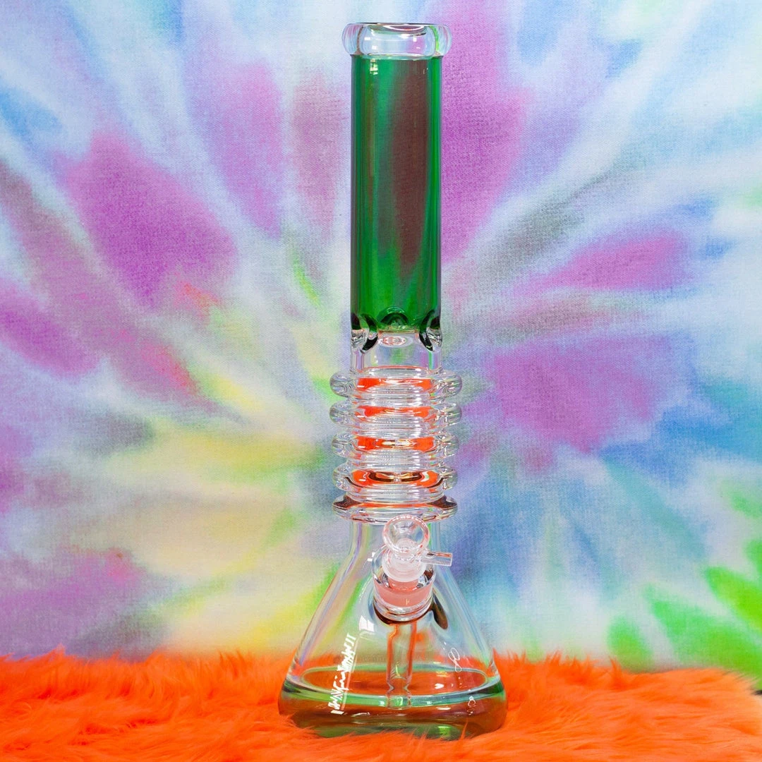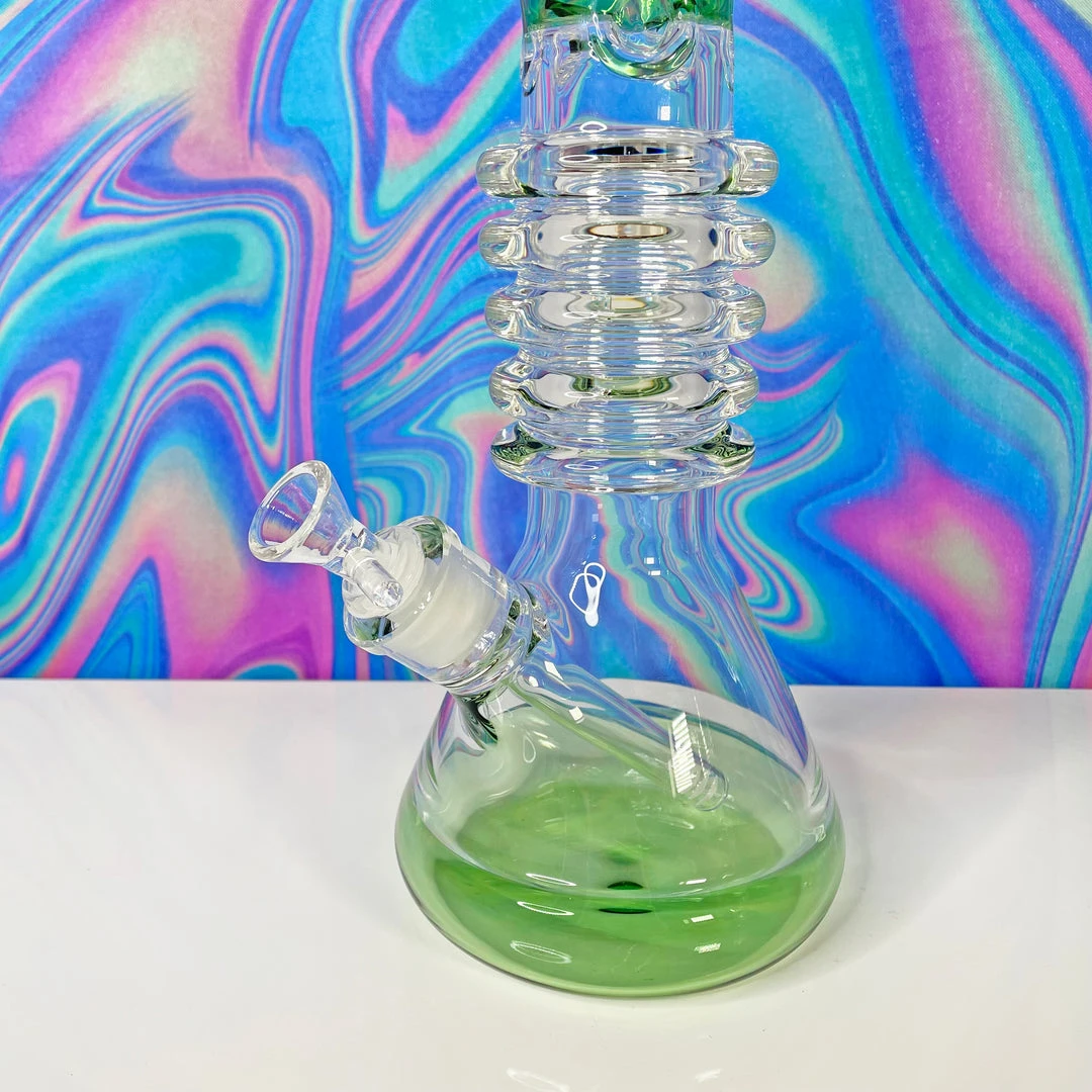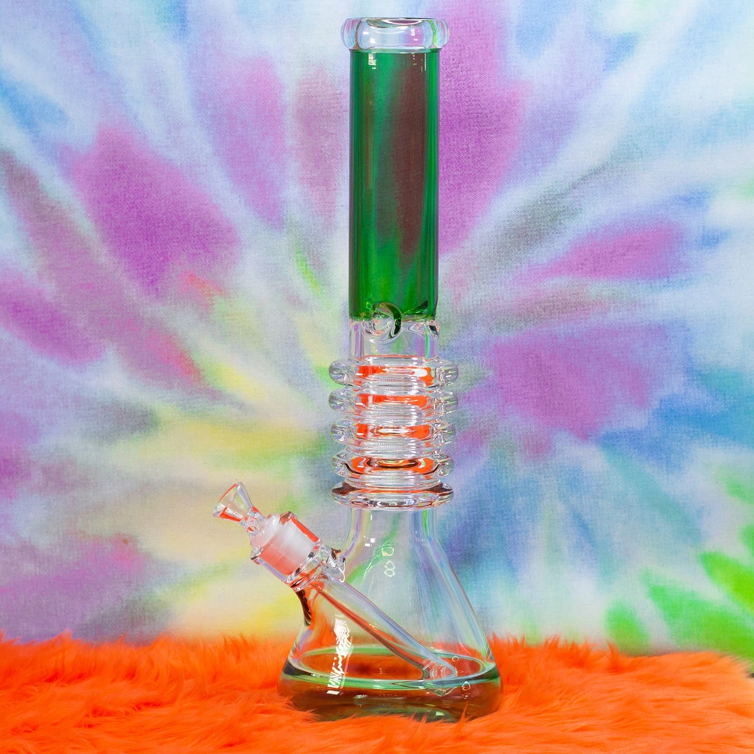 Let’s talk features: we have an ice catcher, an inline perc, a stable beaker shape, and something we’ve never seen before that makes this monster special- grip rings on the base of the neck! You never knew about em but now you won’t be able to live without em.