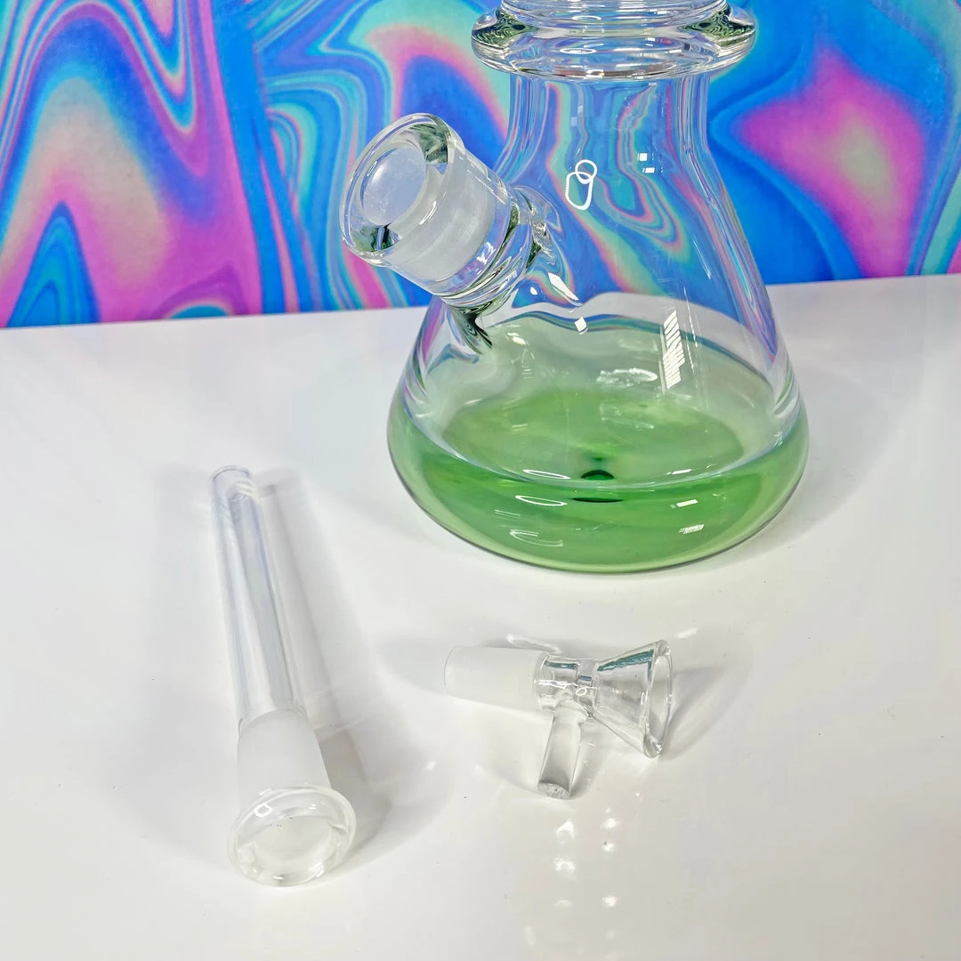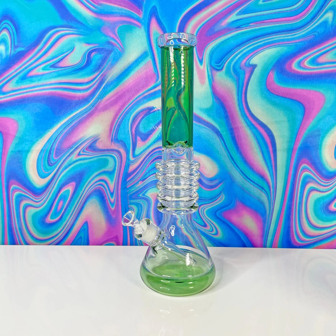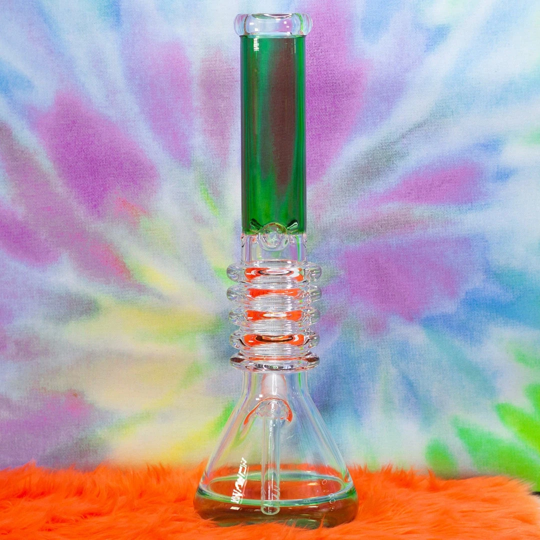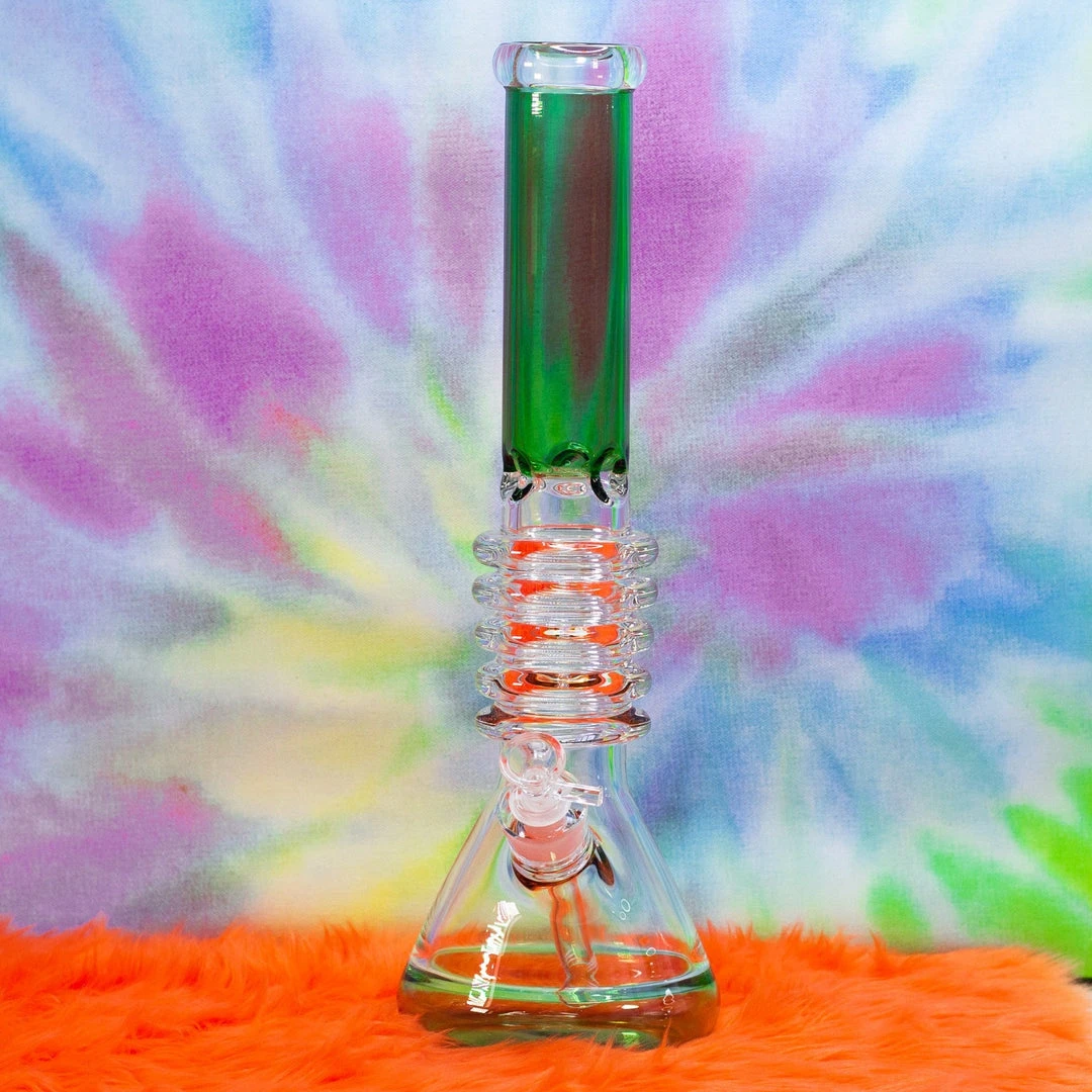 Let’s talk features: we have an ice catcher, an inline perc, a stable beaker shape, and something we’ve never seen before that makes this monster special- grip rings on the base of the neck! You never knew about em but now you won’t be able to live without em.
