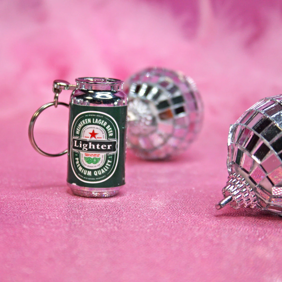To use lighter, flick the lever with the jump ring on it and flame will come from the hole in the can!