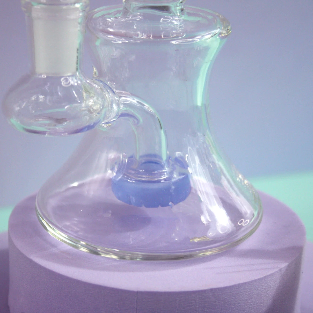 Blossom has an hourglass shaped smoke chamber. She’s got colored accents on the mouthpiece and perc. She even comes with a super special blossom slide!