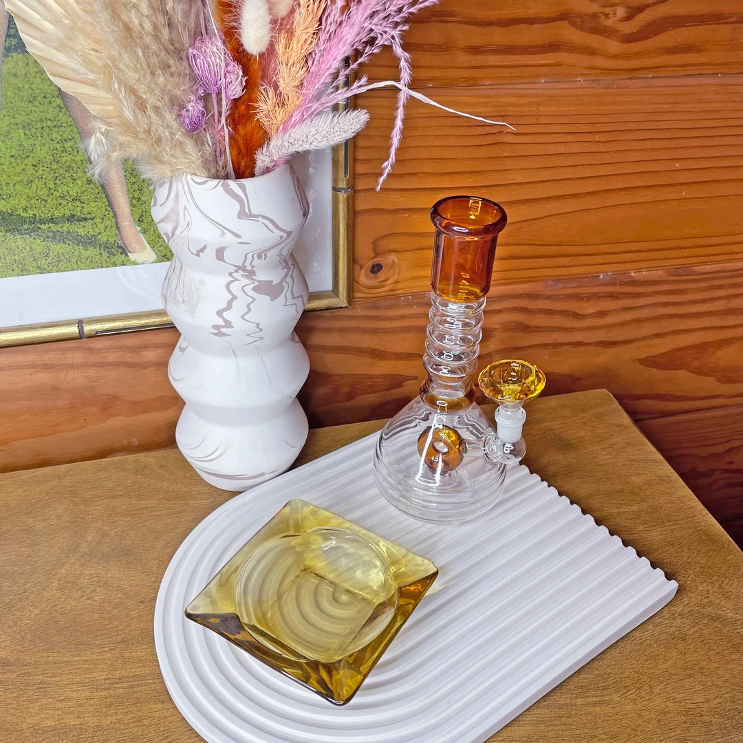 This water pipe has a wide base to keep it stable. A long neck made of milky glass makes each hit * extra * special. Accents of jade glass on the perc and neck and an ash catcher make this piece kayuuuute!