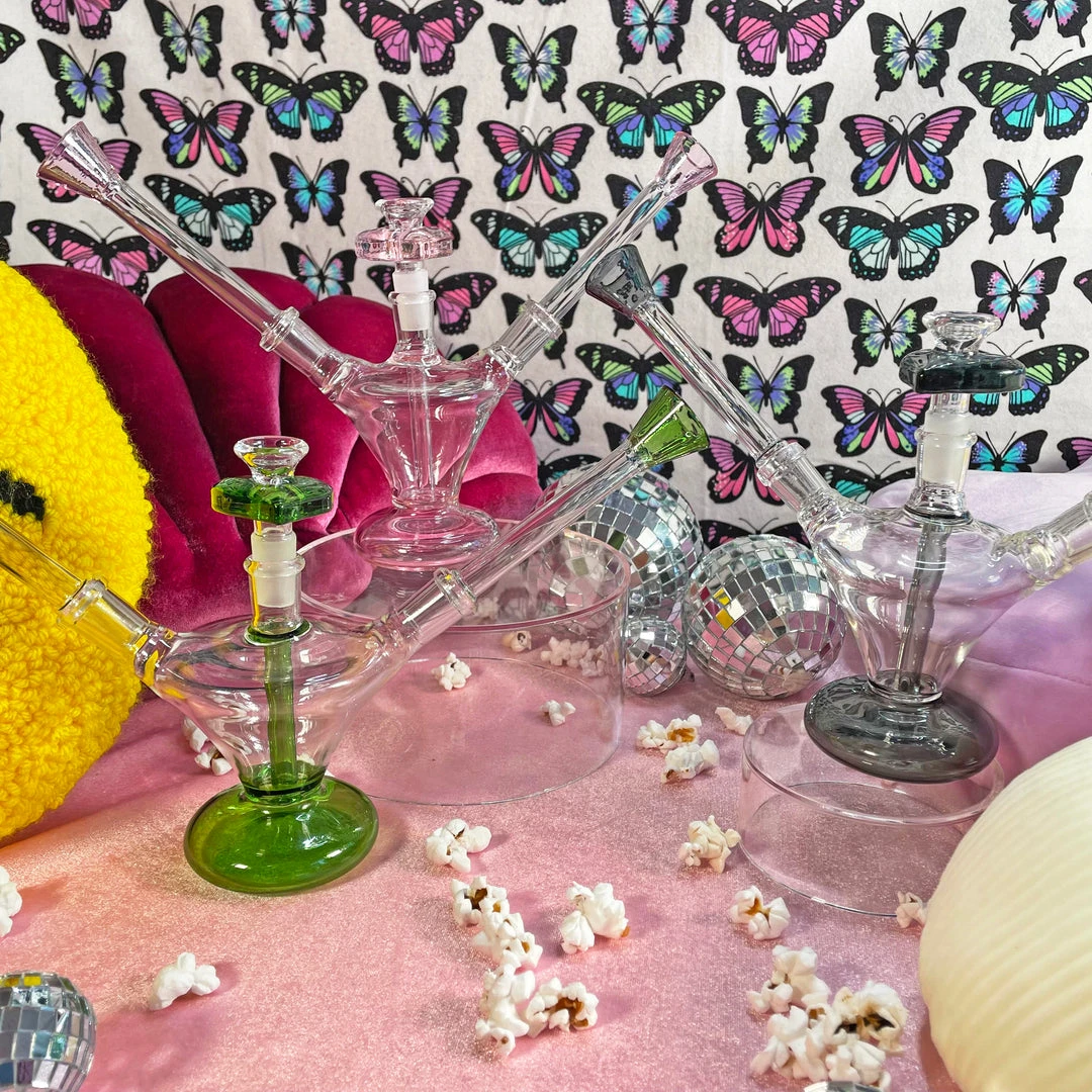 How to use: fill with water, pack your bowl. Light the bowl (slide goes on top) and you both can inhale at the same time. When the inhaling is done, you can lift the mouthpiece out of the smoke chamber to clear it. Take turns pulling the “inhale” tube out, play nice!