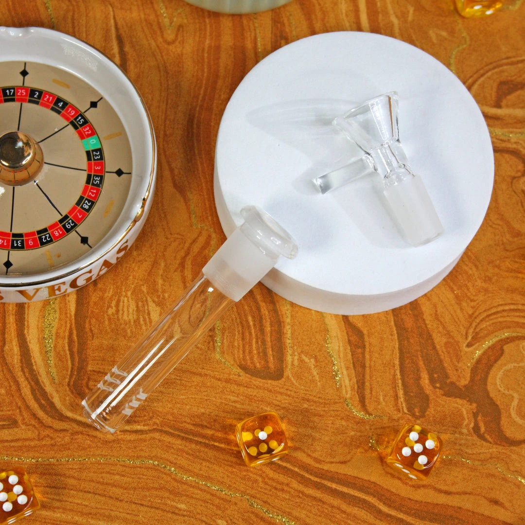 She comes with a 14mm bowl. It is compatible with any of the slides on our site, or you can add a banger to make this a rig!