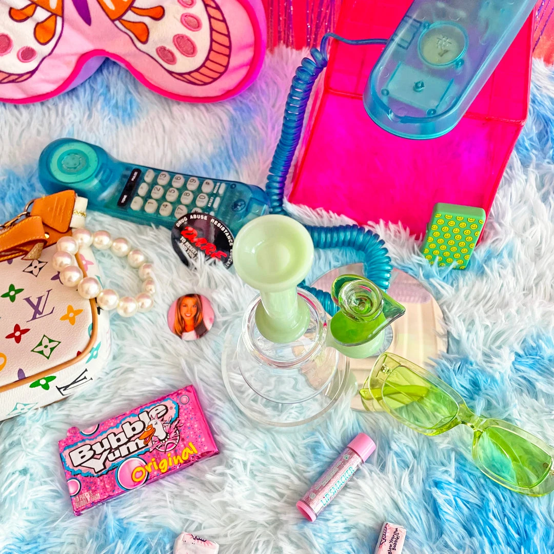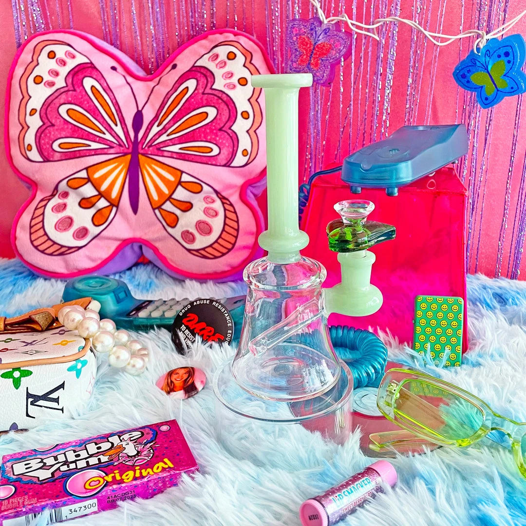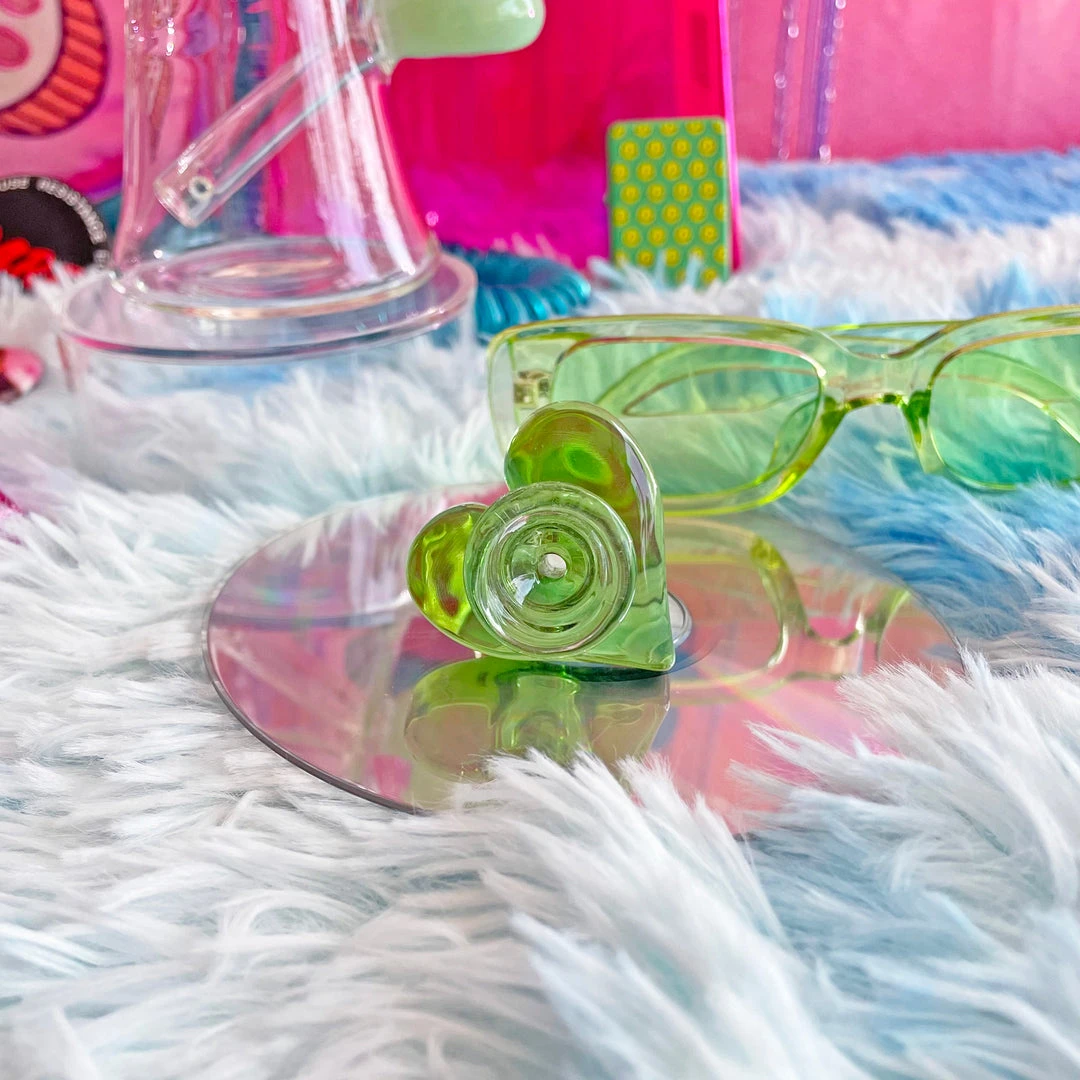 She has a 14mm green heart bowl and is compatible with any of the slides on our site <3