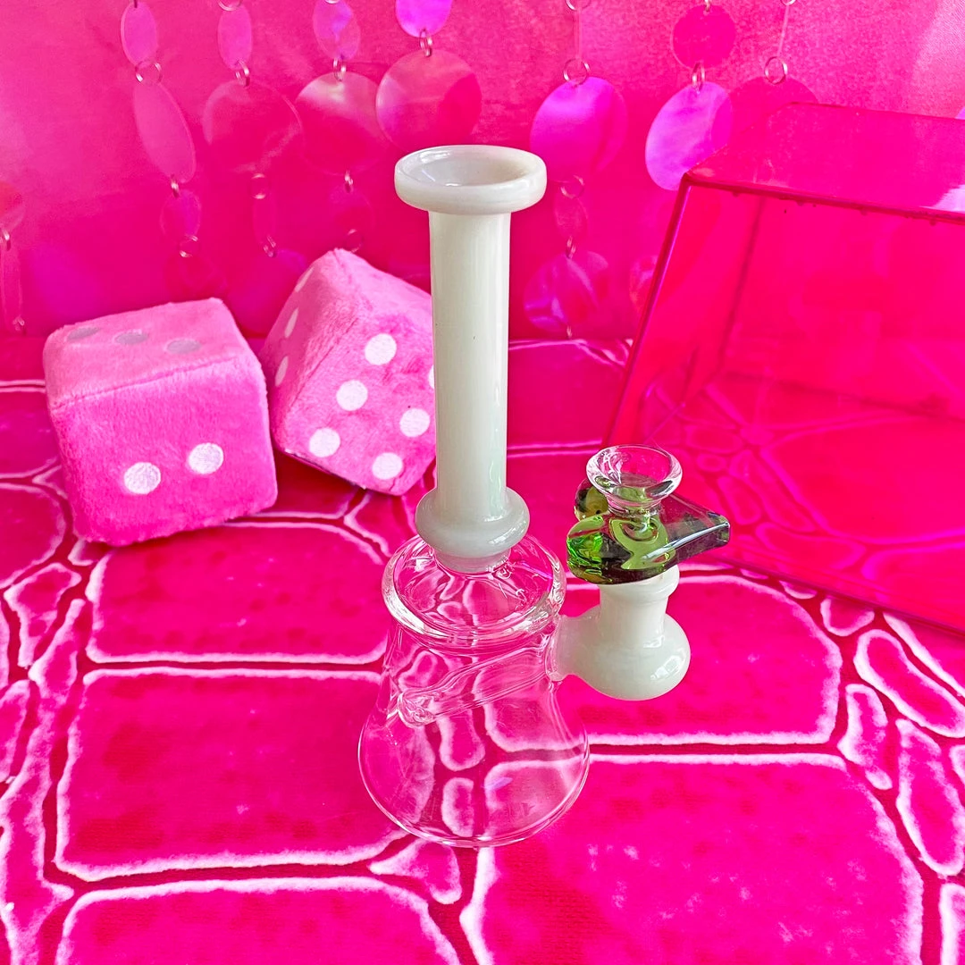 Neck is made of jade glass. Has an ash catcher and an inline perc.