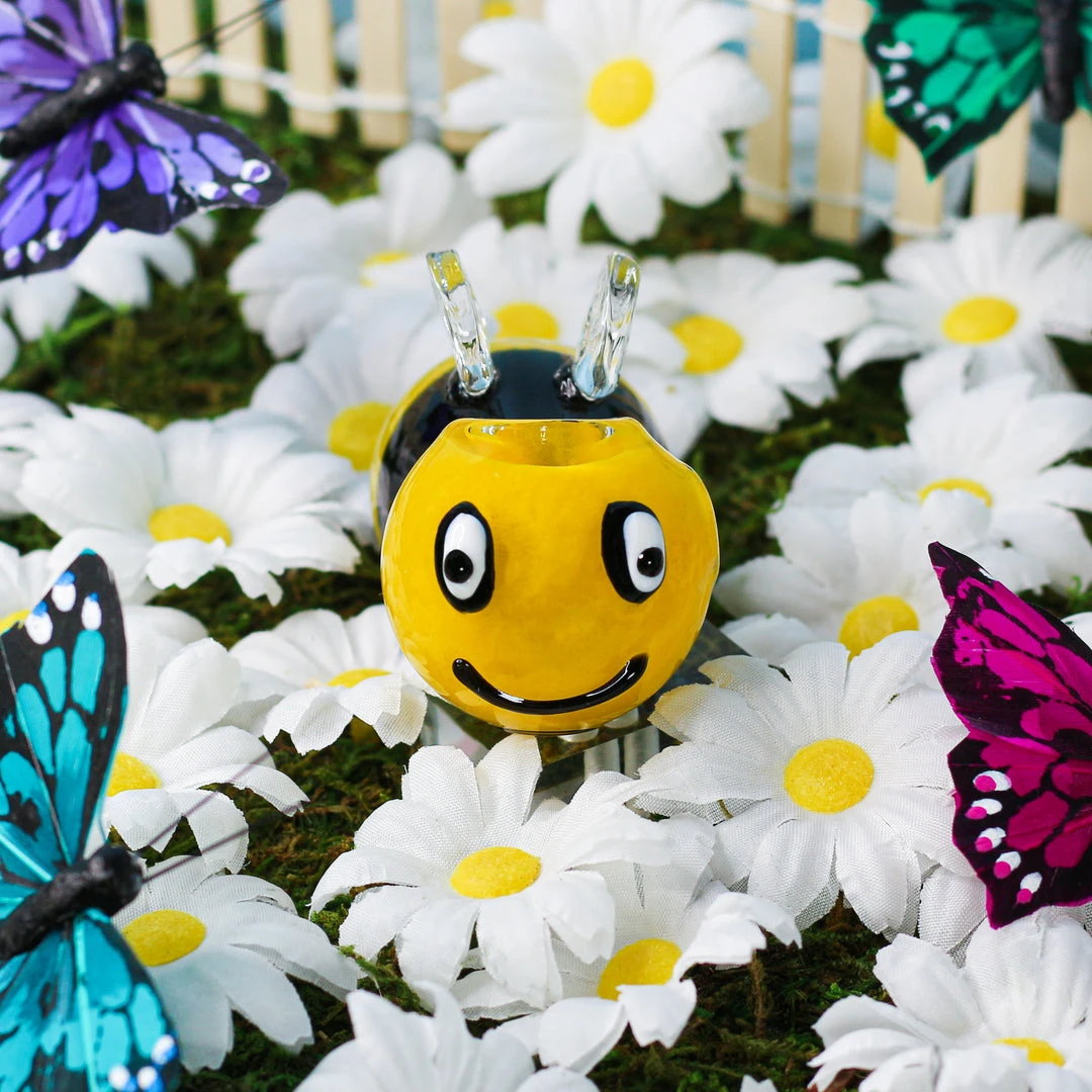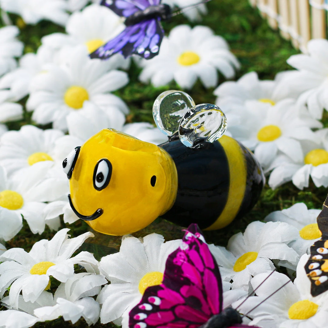 The sweetest lil bee is made completely of sculpted borosilicate glass. So detailed, he has a smile and lil wings!