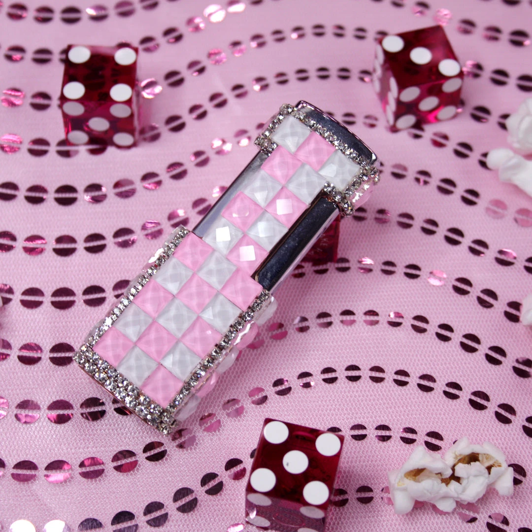 Lighter is covered in checkerboard gems and the edges are lined with rhinestones. AKA the lighter you deserve, girl!