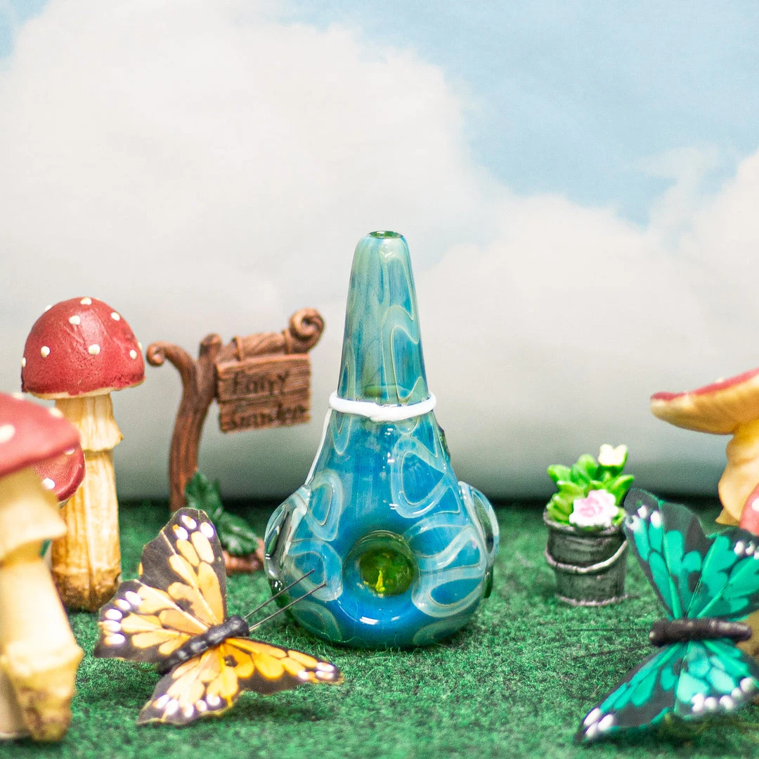 This pipe is shaped like a garden gnome and made of sturdy borosilicate glass. This kitschy pipe features an incredibly detailed cone-shaped gnome with the grumpiest face imaginable. But we love him nonetheless! I am 100% sober while writing this copy. This pipe is just that inspiring. He has changed my life and might change yours.