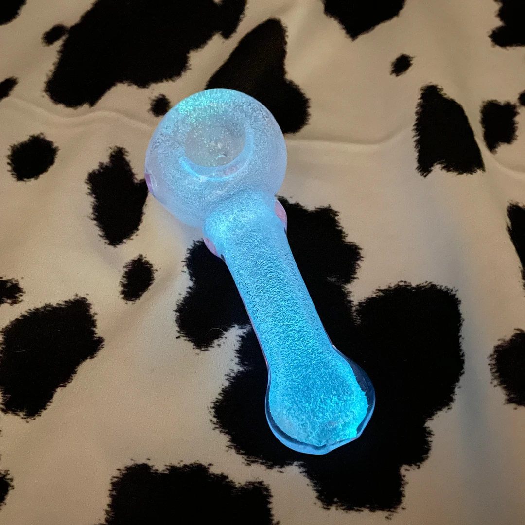 These bbs glow in the dark! These are a medium sized pipe made of borosilicate glass. Each pipe also has a flat bottom under the bowl to keep it from rolling 🙂