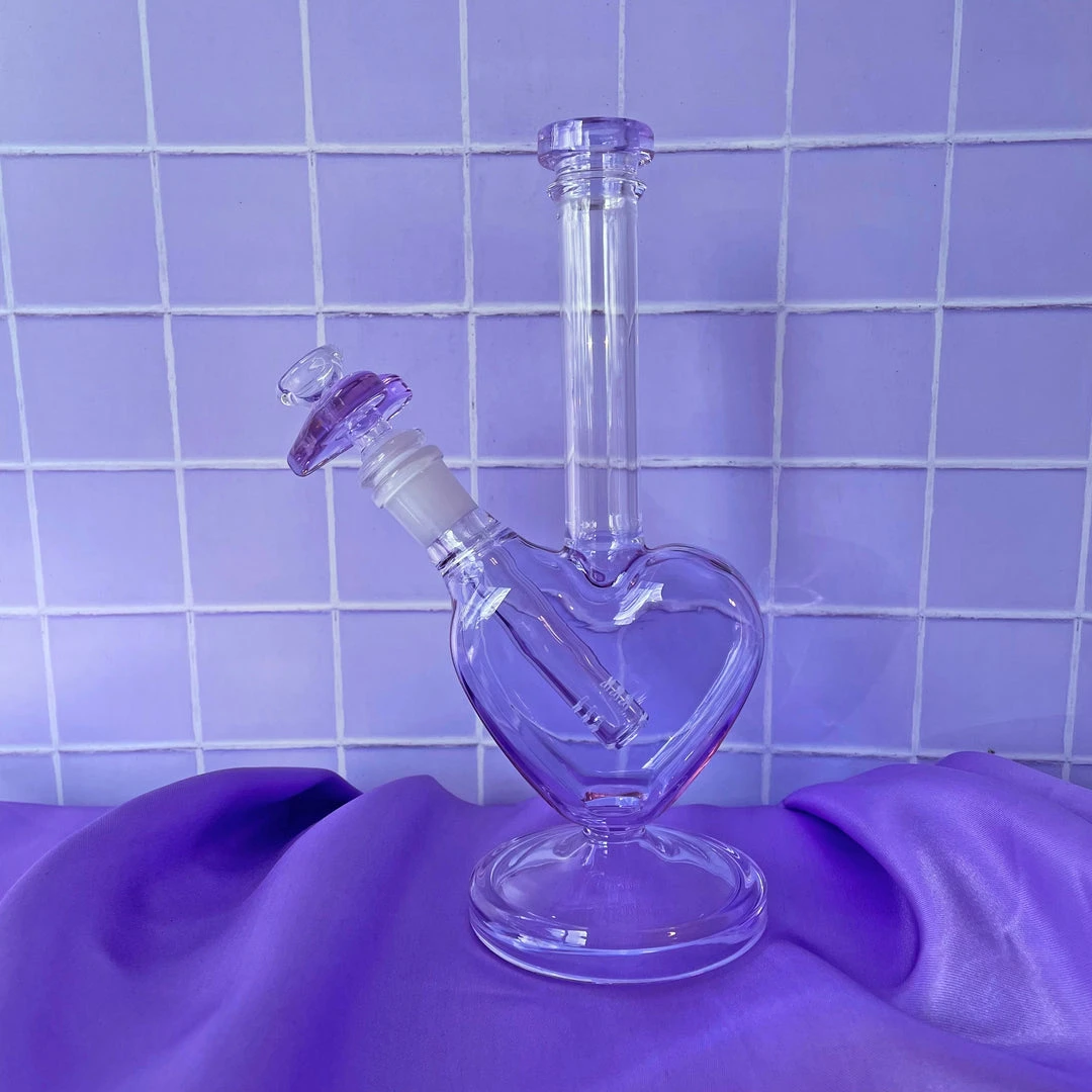 These pipes feature a sweet heart <3 They are made of sturdy borosilicate glass and measure 9″ tall. Pipes come with a heart shaped 14mm slide.