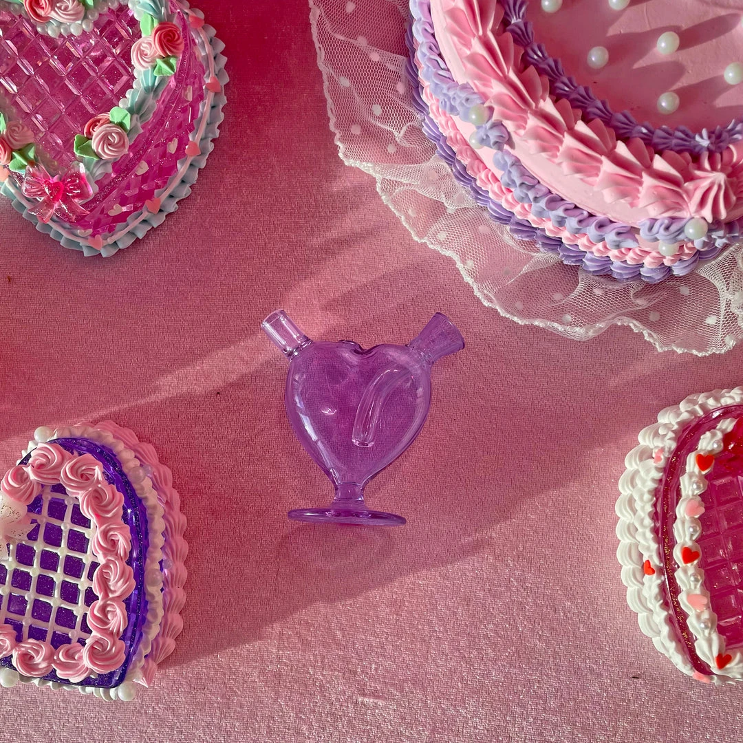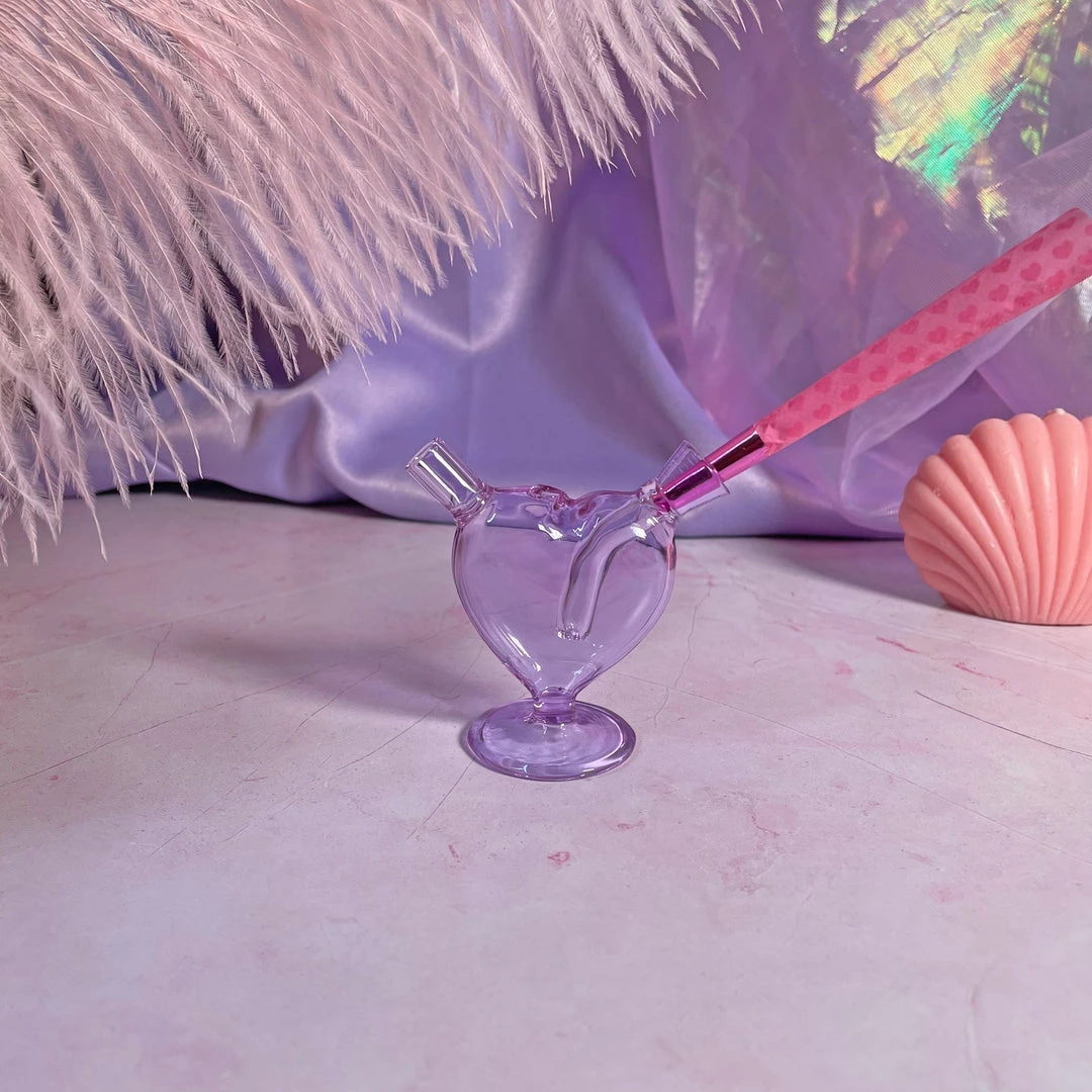 To use this piece, fill the heart shape with water. Place joint tip down into the side with the cone/straw. Cover the carb on the top and inhale through the straw side. Enjoy 😉