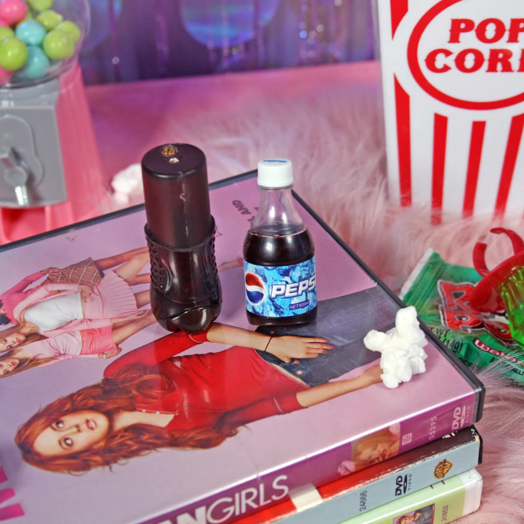 To ignite, first FILL YOUR LIGHTER WITH BUTANE (more on that below!) Next, with the soda pop flipped upside down, flick the bottom of the bottle in the direction of the downward diagonal seam.
