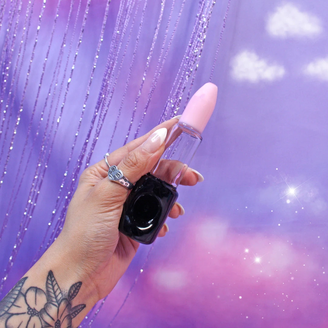 Made of sturdy boro glass, this pipe is a little bit larger than an IRL tube of lipstick. Features a carb at the bottom, a bowl on the top of the tube and the mouthpiece is the top of the lipstick. Cute, right?
