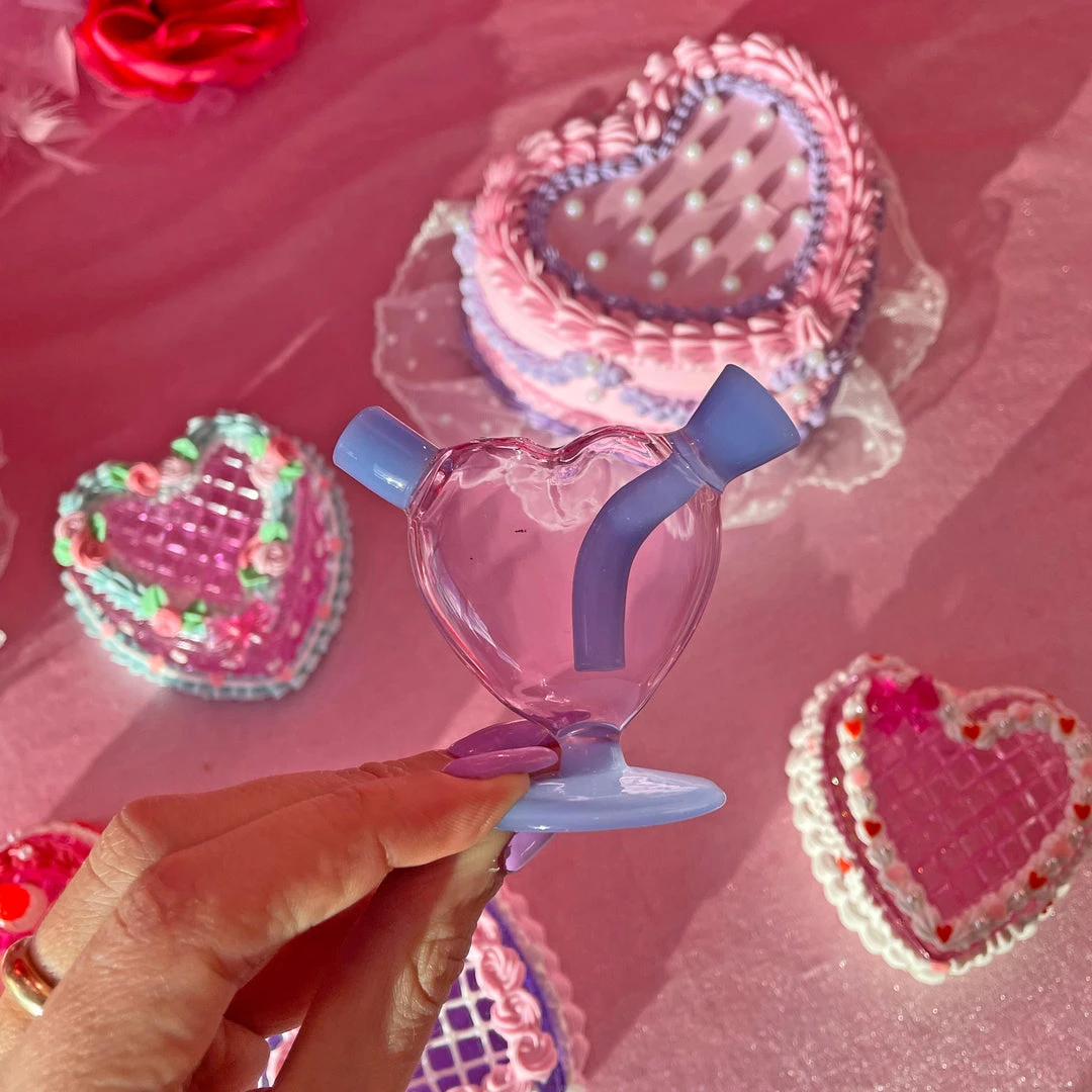 To use this piece, fill the heart shape with water. Place joint tip down into the side with the cone/straw. Cover the carb on the top and inhale through the straw side. Enjoy 😉