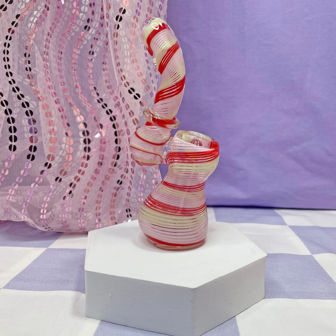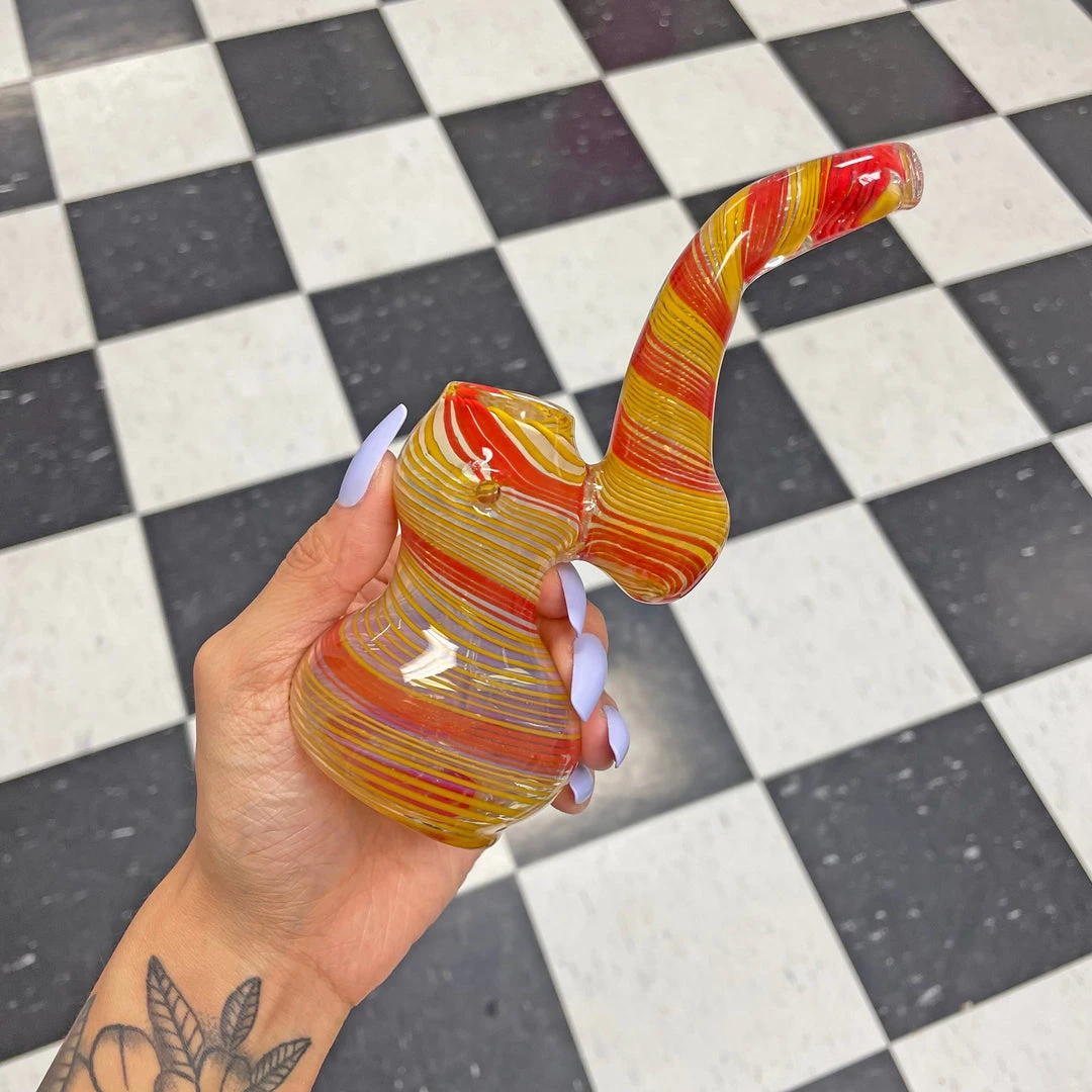 These bubblers are made of swirly striped borosilicate glass and measure approx. 6″ x 3″
