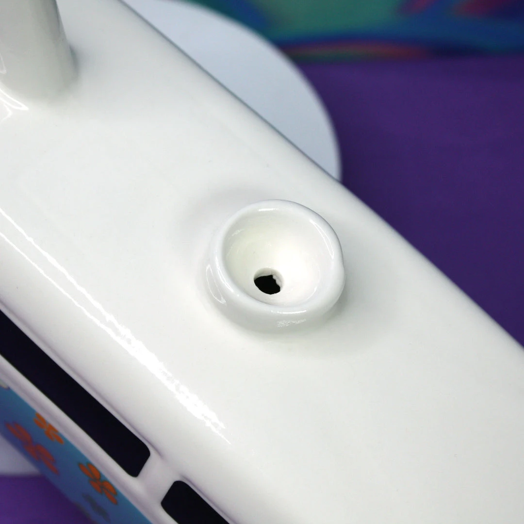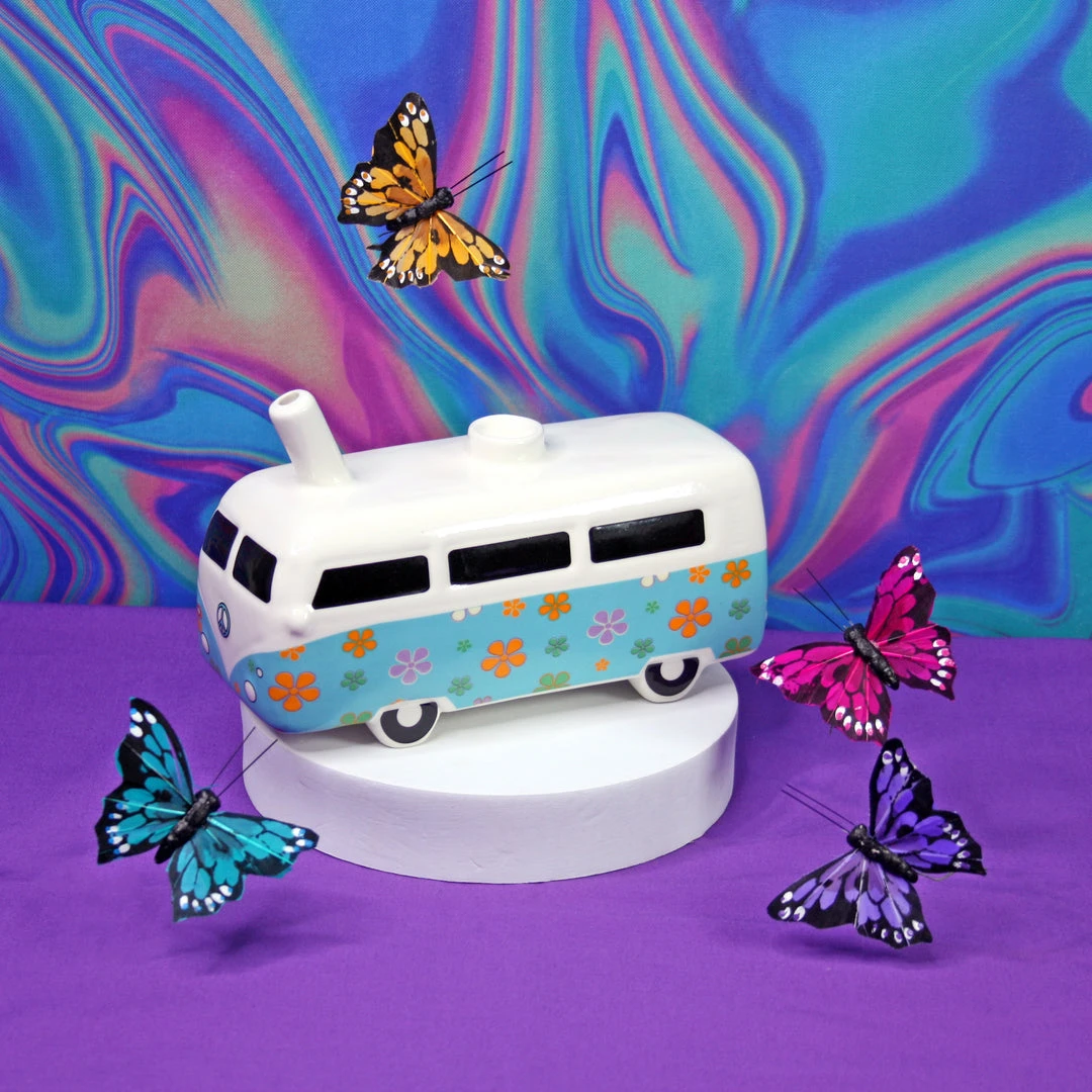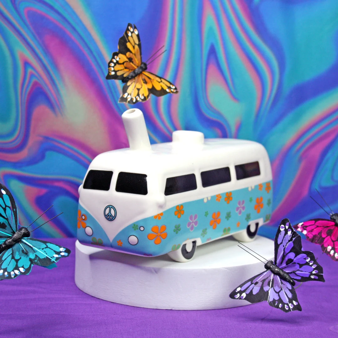 This fully functional pipe is made of ceramic and measures 7.25″ x 6″ x 3″. Shaped like a retro van complete with a groovy floral pattern!