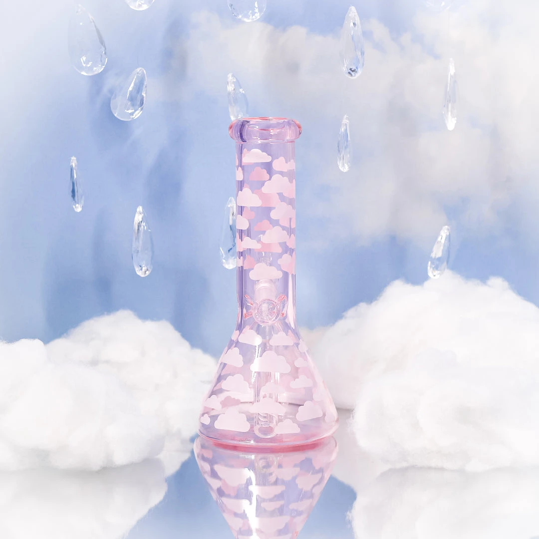 This classic beaker style bong is decorated on all sides with a dreamy cloud skyscape ☁️