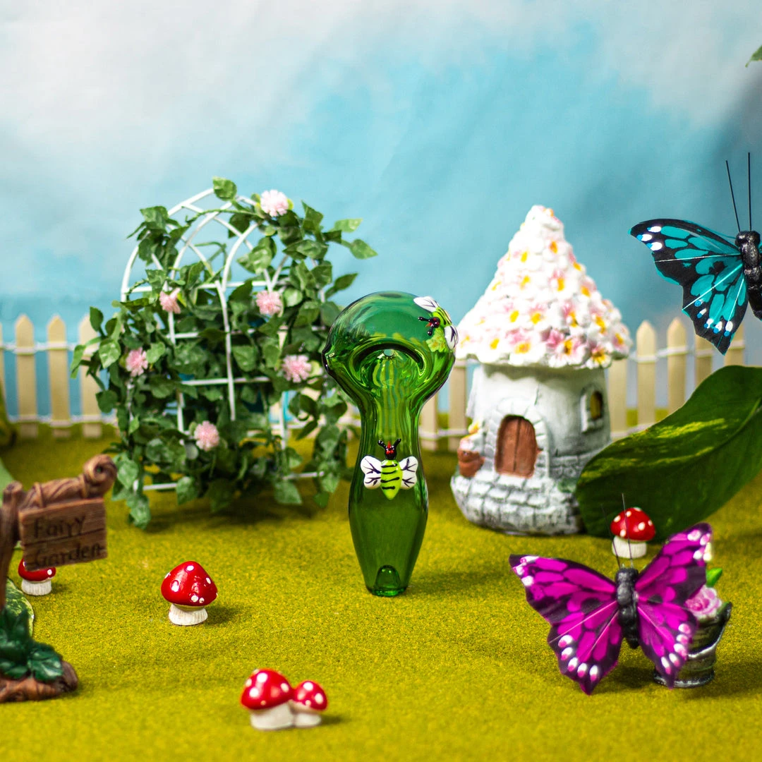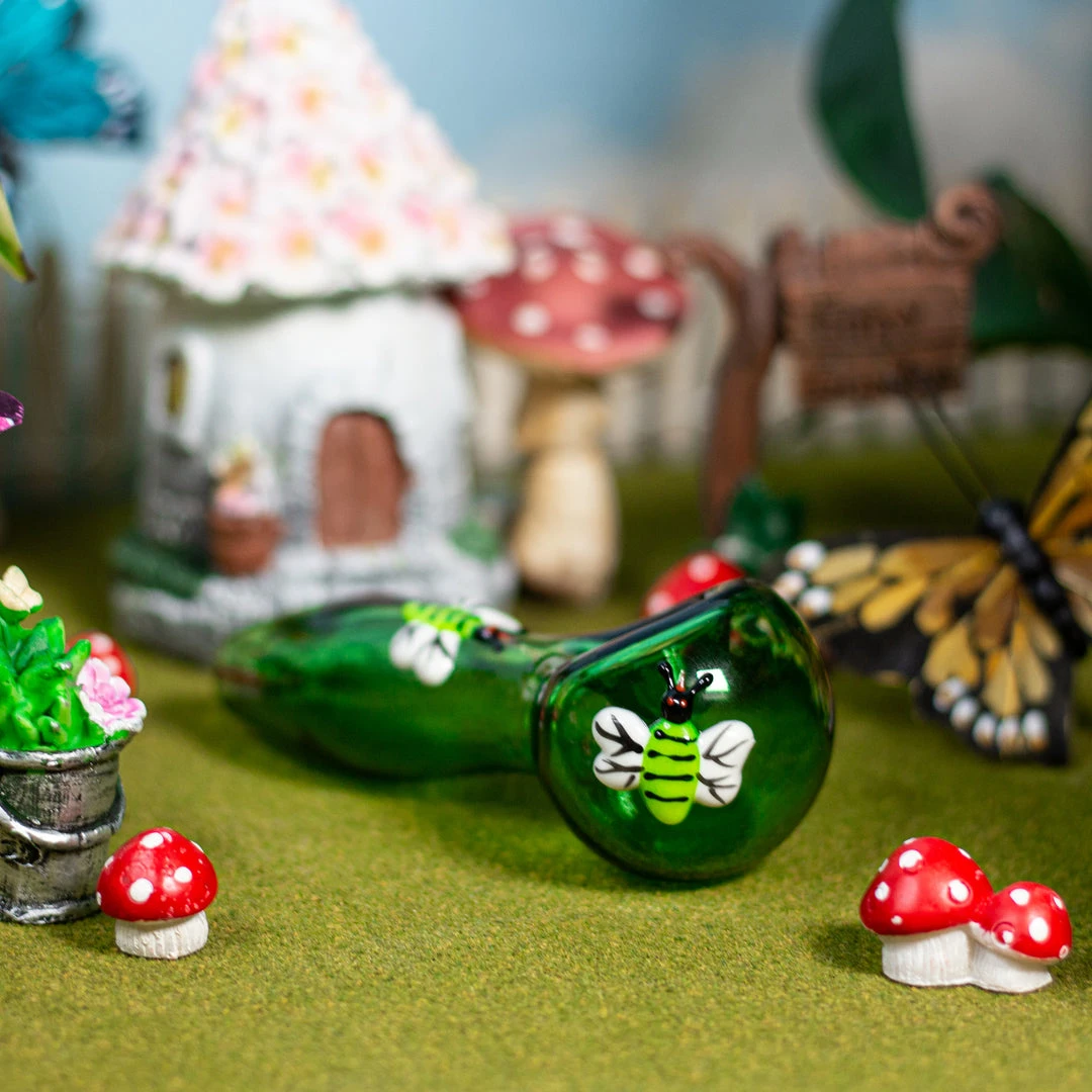 These pipes feature a bee on the length of the pipe and another one on the bowl. The best part? The bees glow in the dark! and each pipe also has a flat side under the bowl to keep it from rolling!