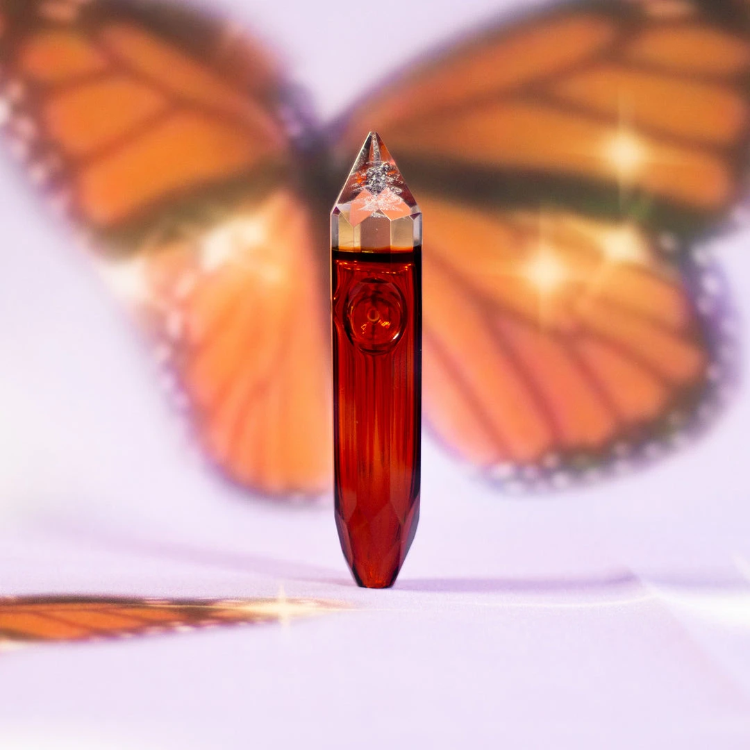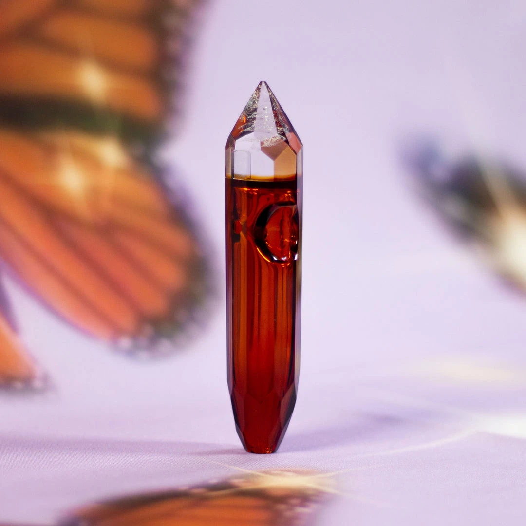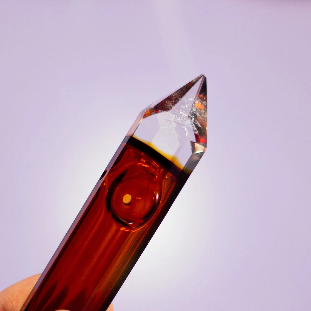 This fully functional pipe is made of amber boro glass and measures 5″. Faceted just like a crystal!