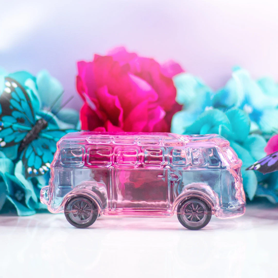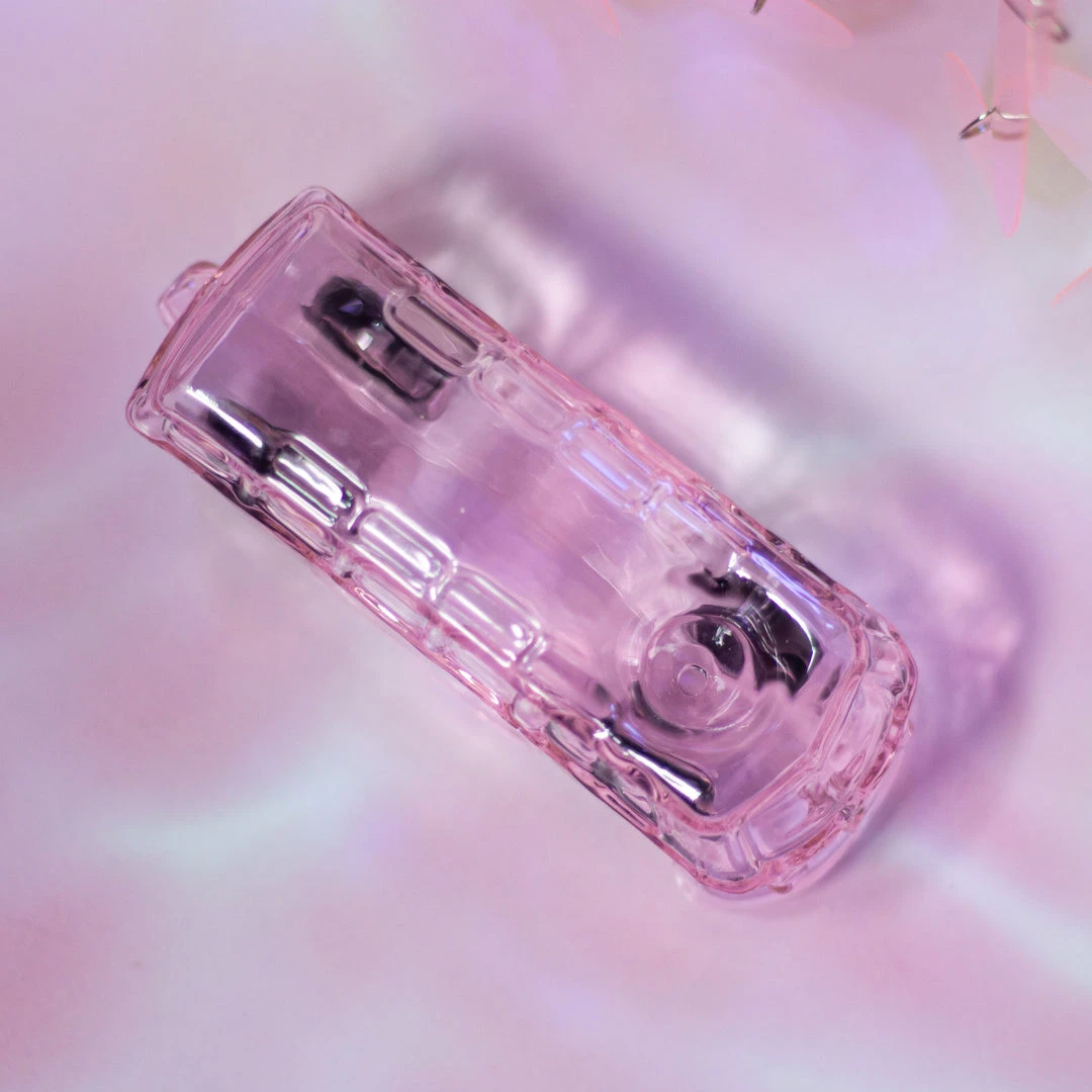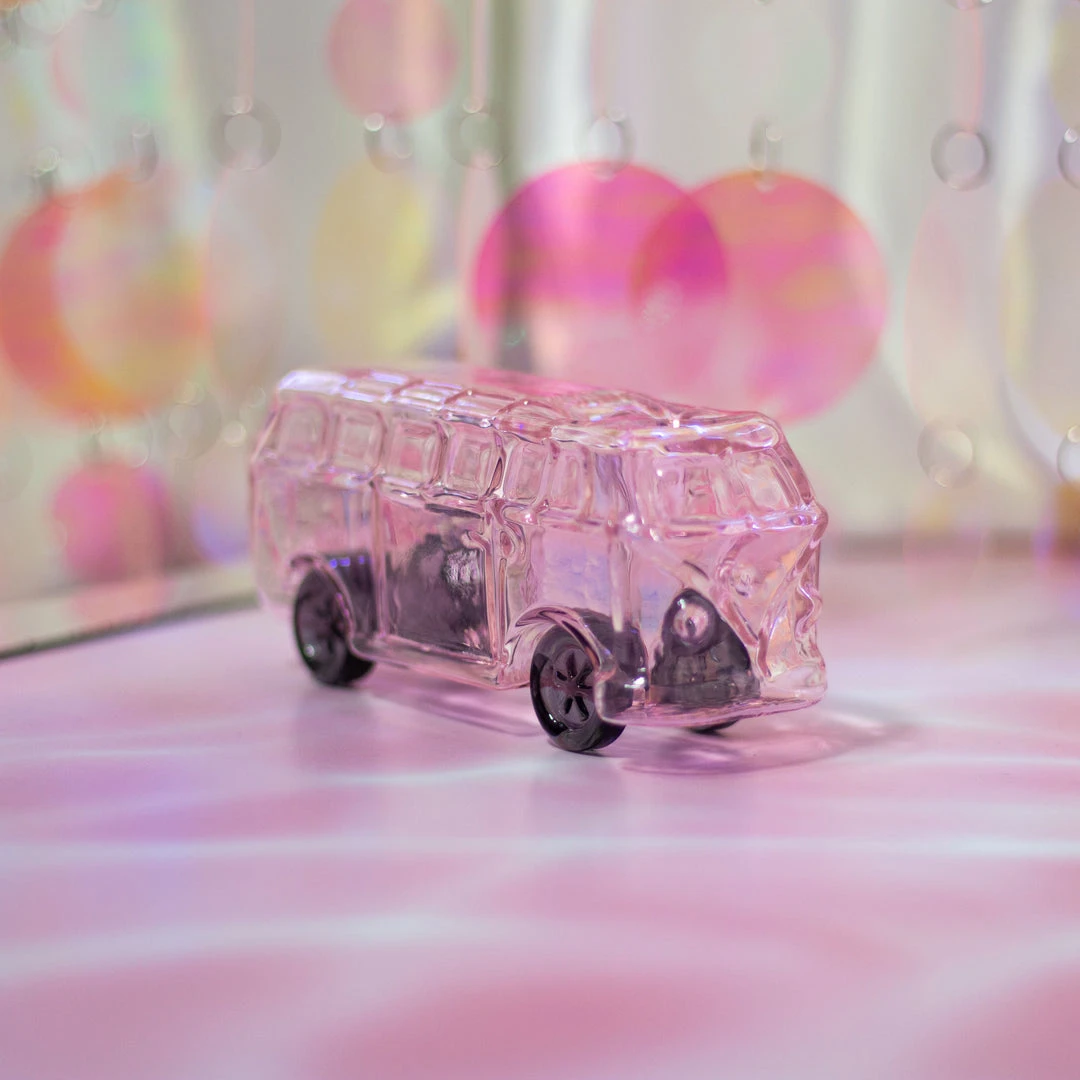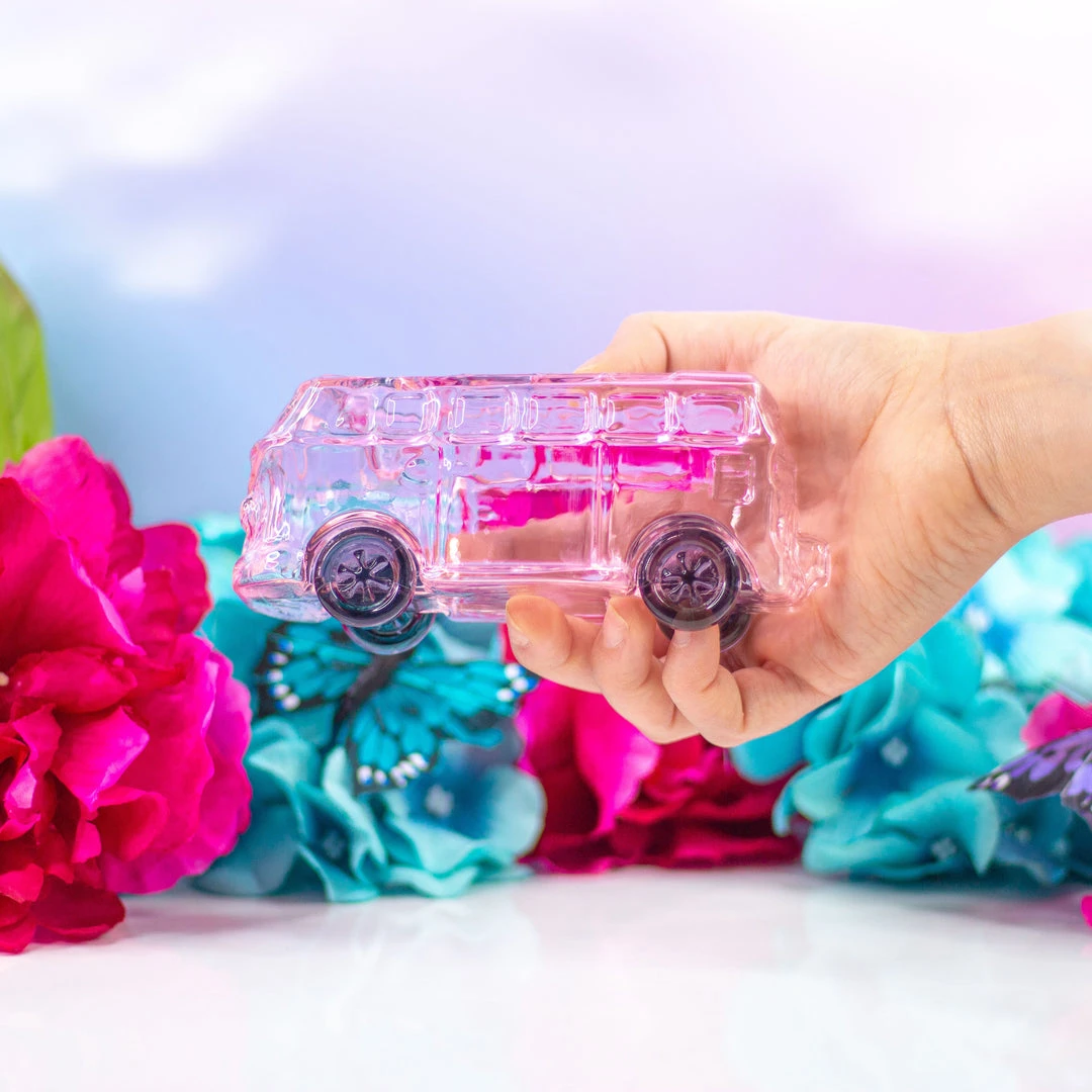 This fully functional pipe is made of pink boro glass and measures 5″ x 2.25″ x 1.75″. Shaped like a retro van complete cute wheels! Even has cute details like windows and headlights.