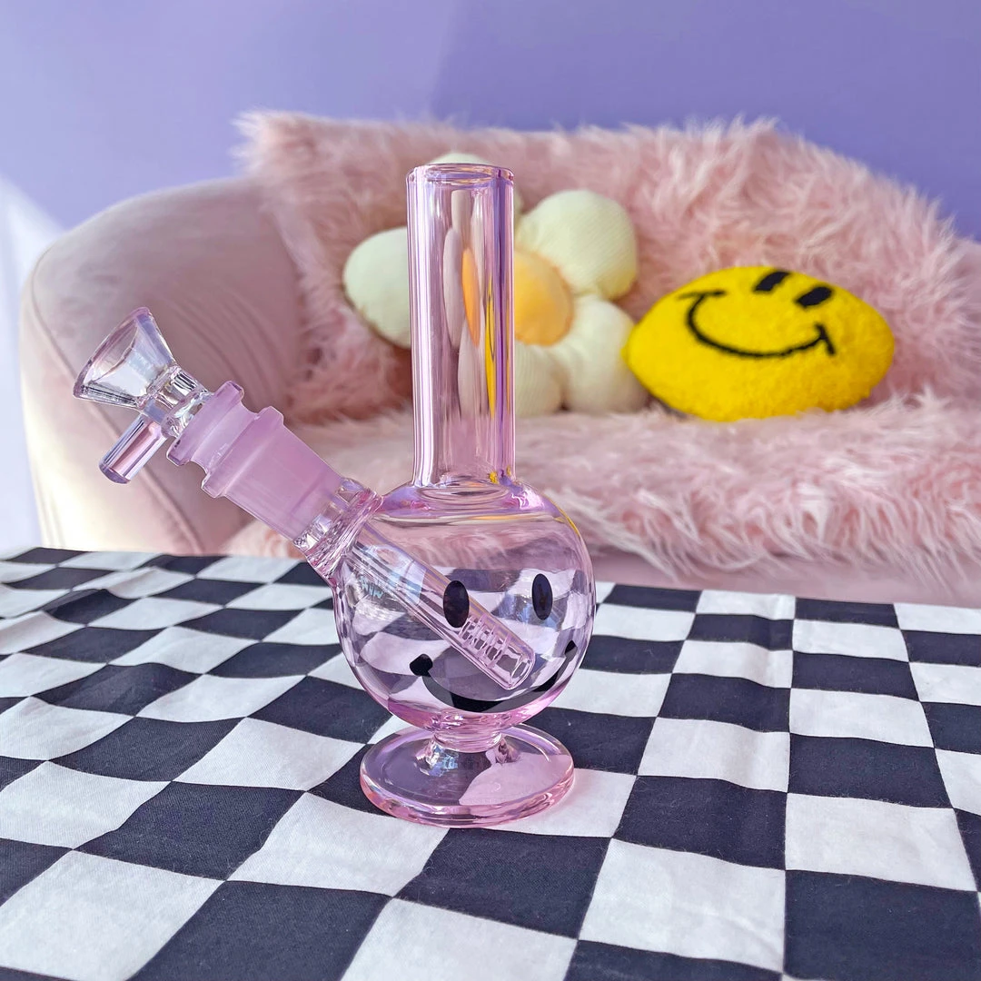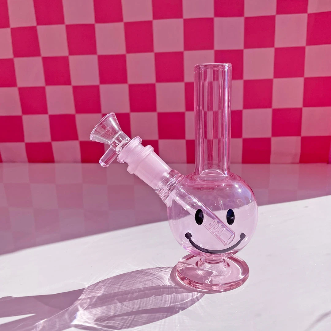Made of thick borosilicate glass. 6.5″ tall. Made entirely of pink colored glass. Comes with a 14mm bowl.