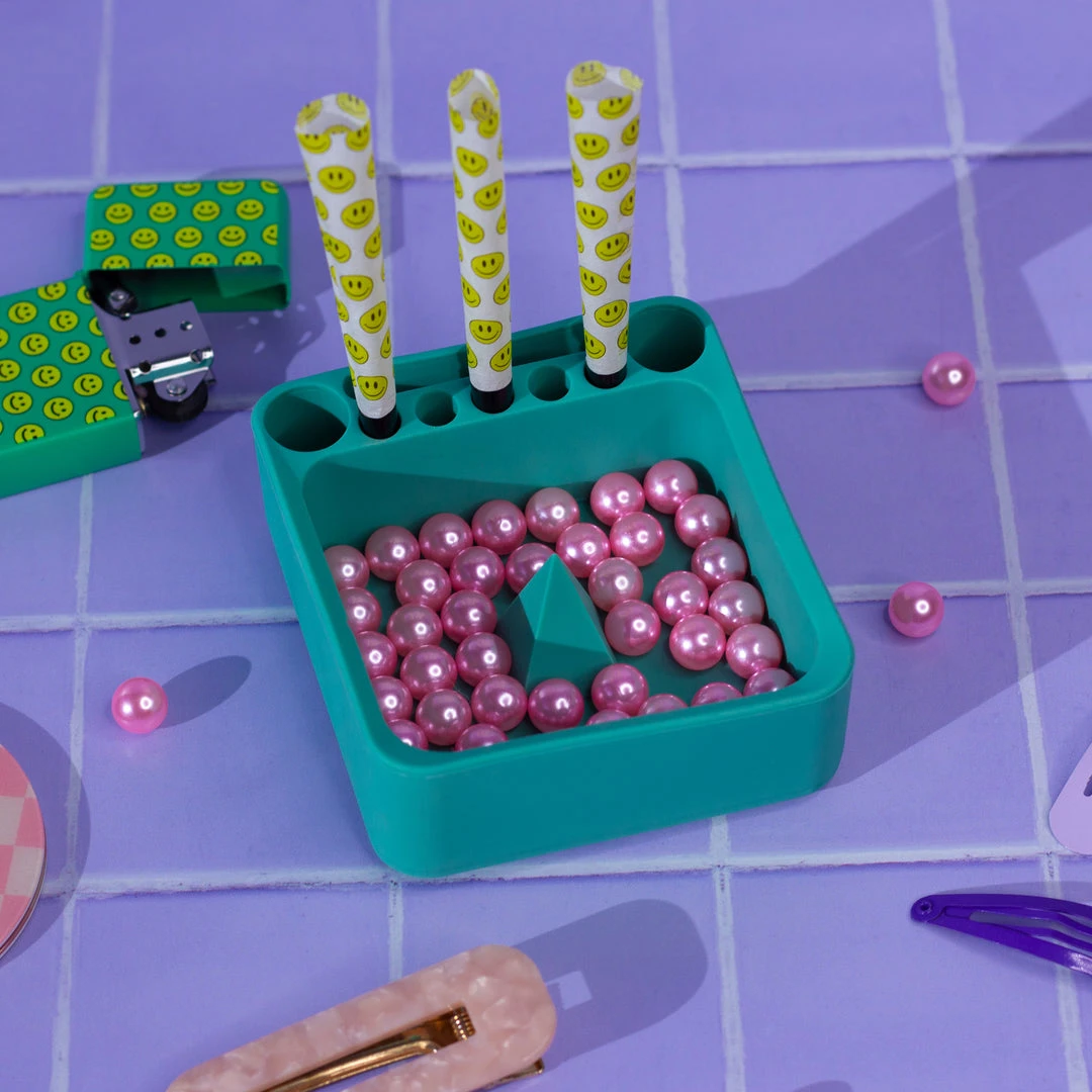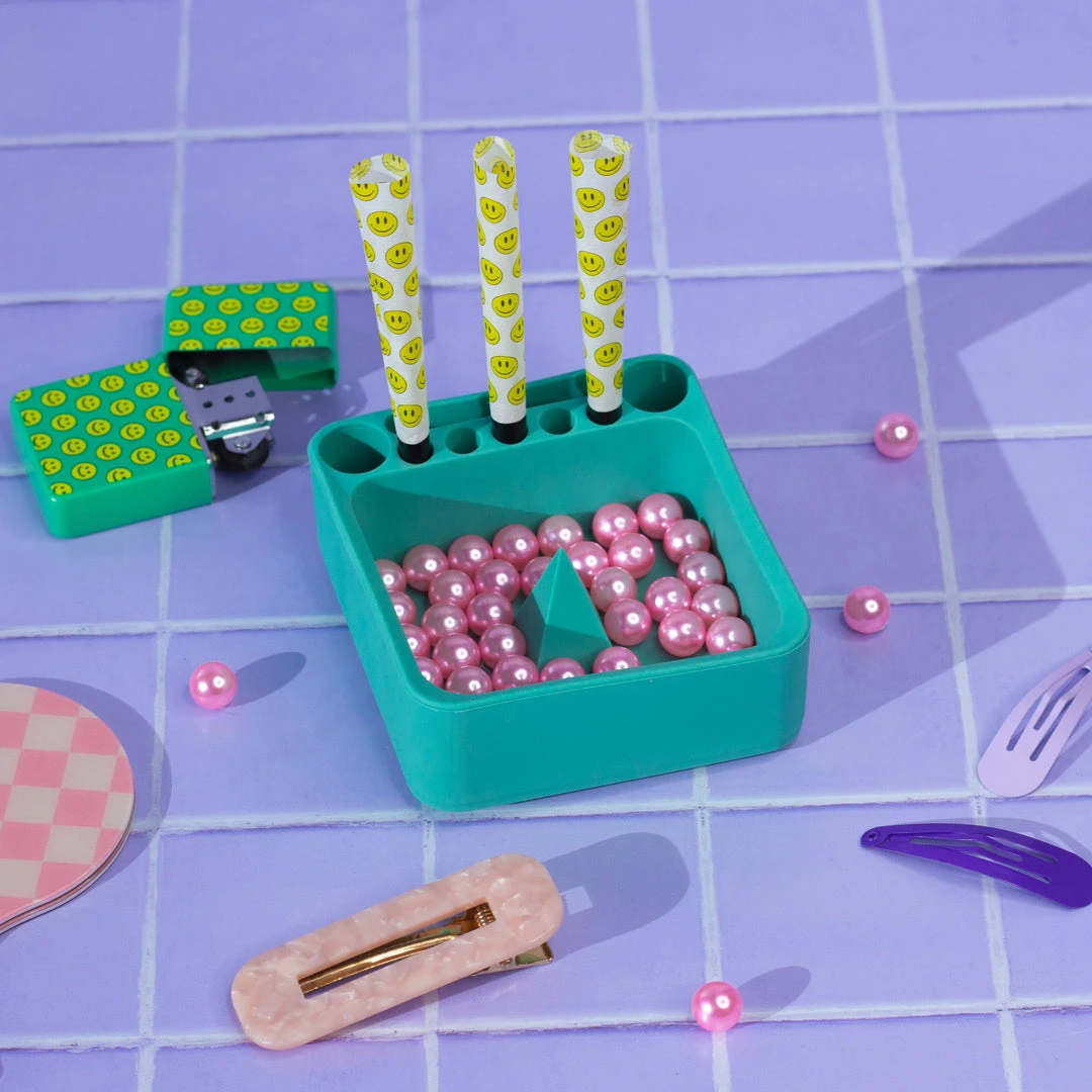 Features a silicone spike to de-bowl your slides or pipes and a storage station to keep tools!