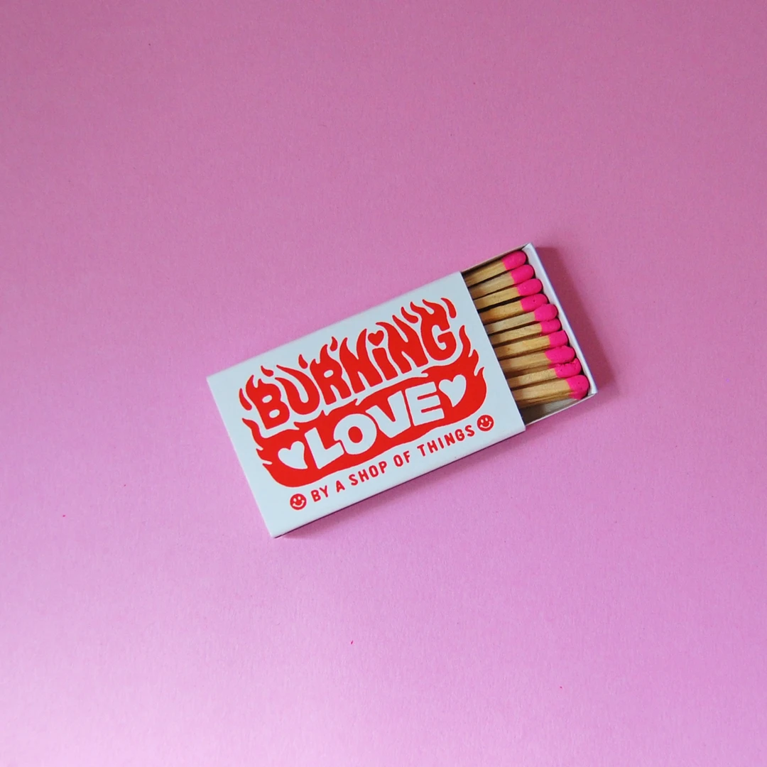 Cute decorative matchbox filled with 18 wooden safety matches with pink and white tips 😍
