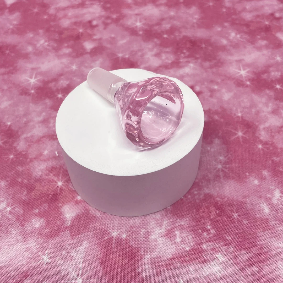 Slide is made of sturdy borosilicate pink glass. Male, 14mm, fits almost all of the bongs that we sell.