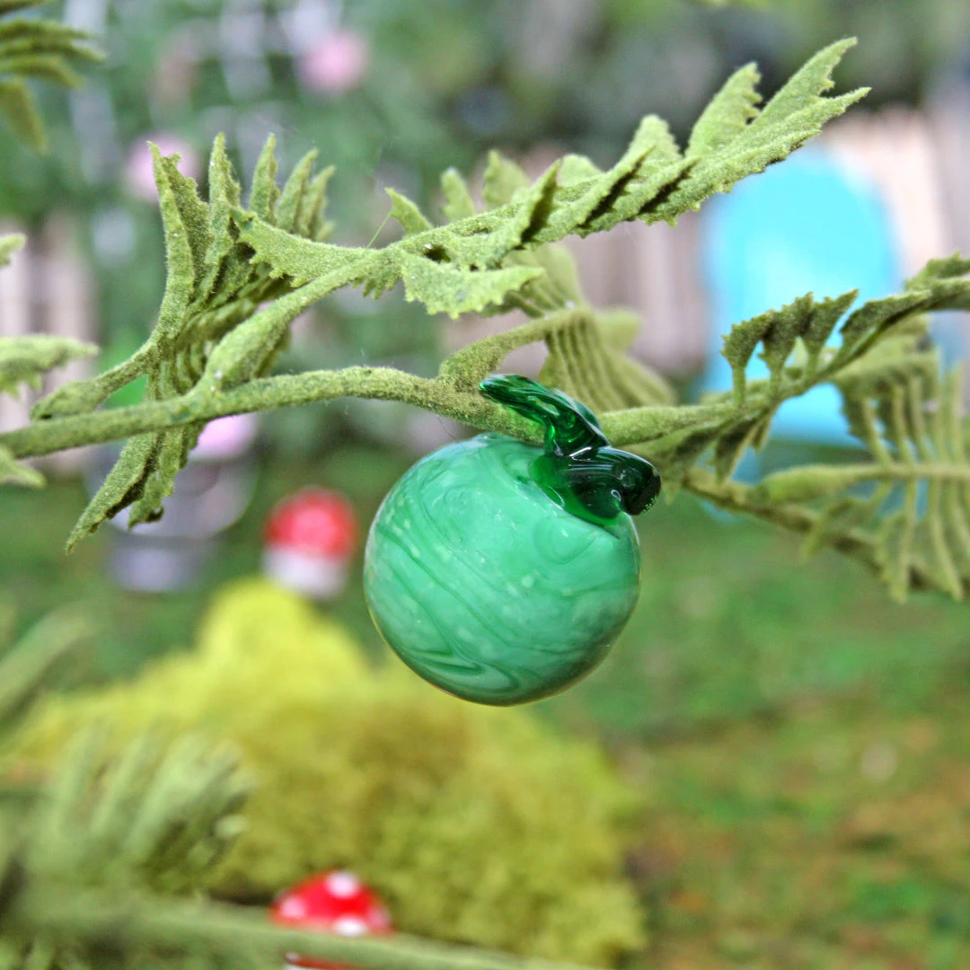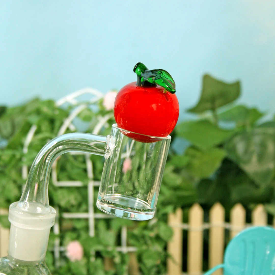 This carb cap is shaped like an apple and is made of borosilicate glass.