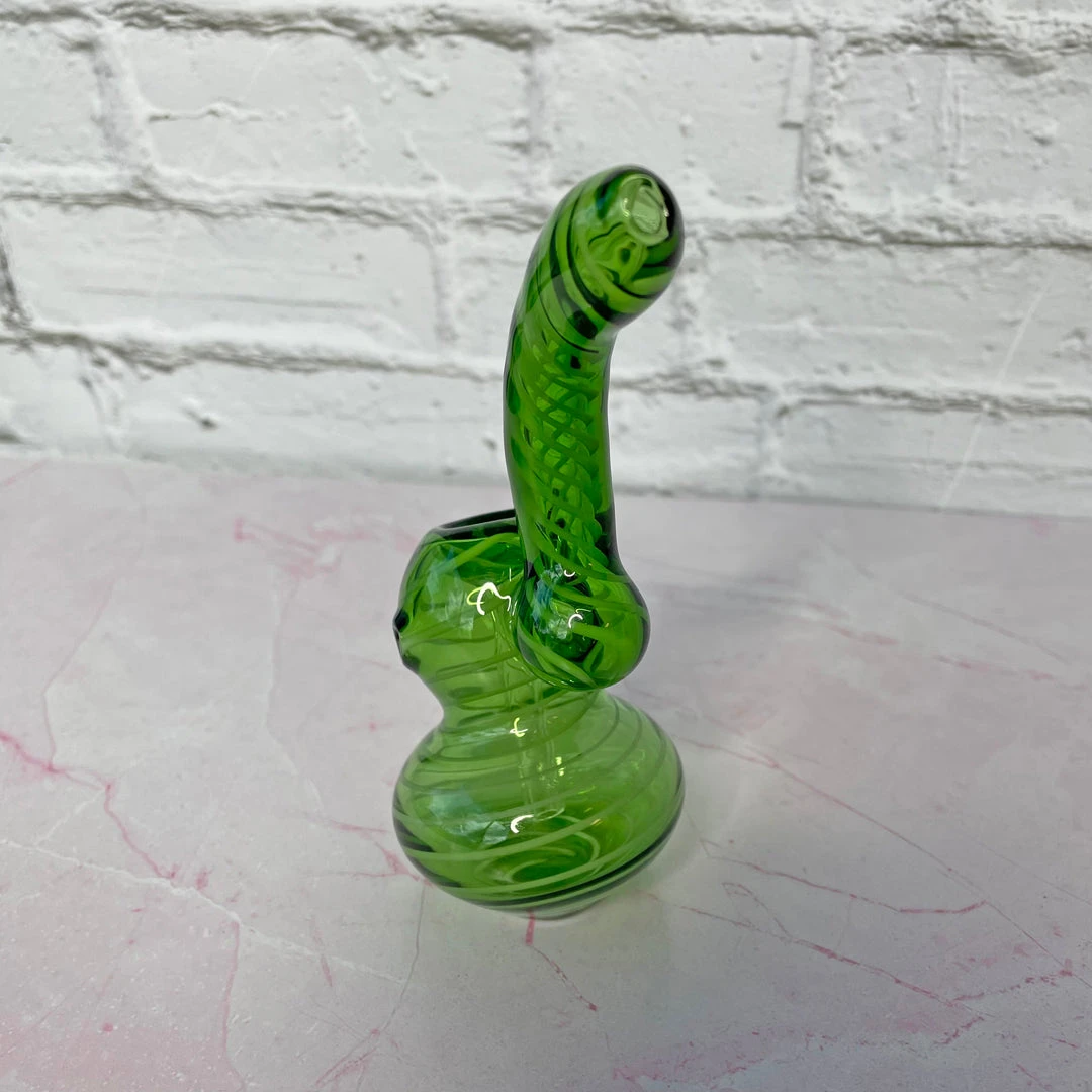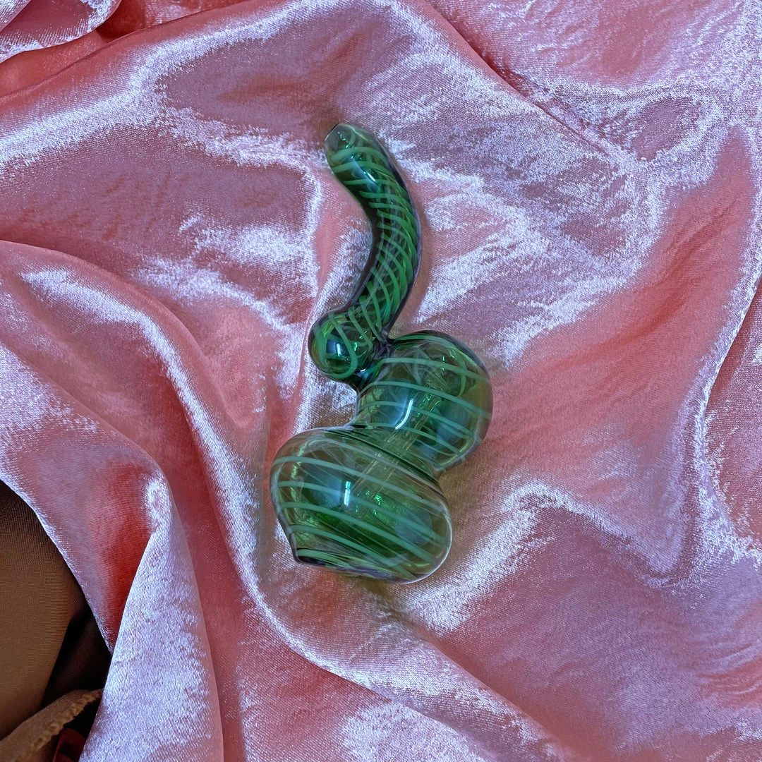 The Bubble Buddy in Green measures just 5″ tall, making it ideal for those perfect lil puffs of joy! Featuring a delicate swirl design that stretches from the base of the bowl to the tip-top, this lil gem is sure to become your new go-to piece.