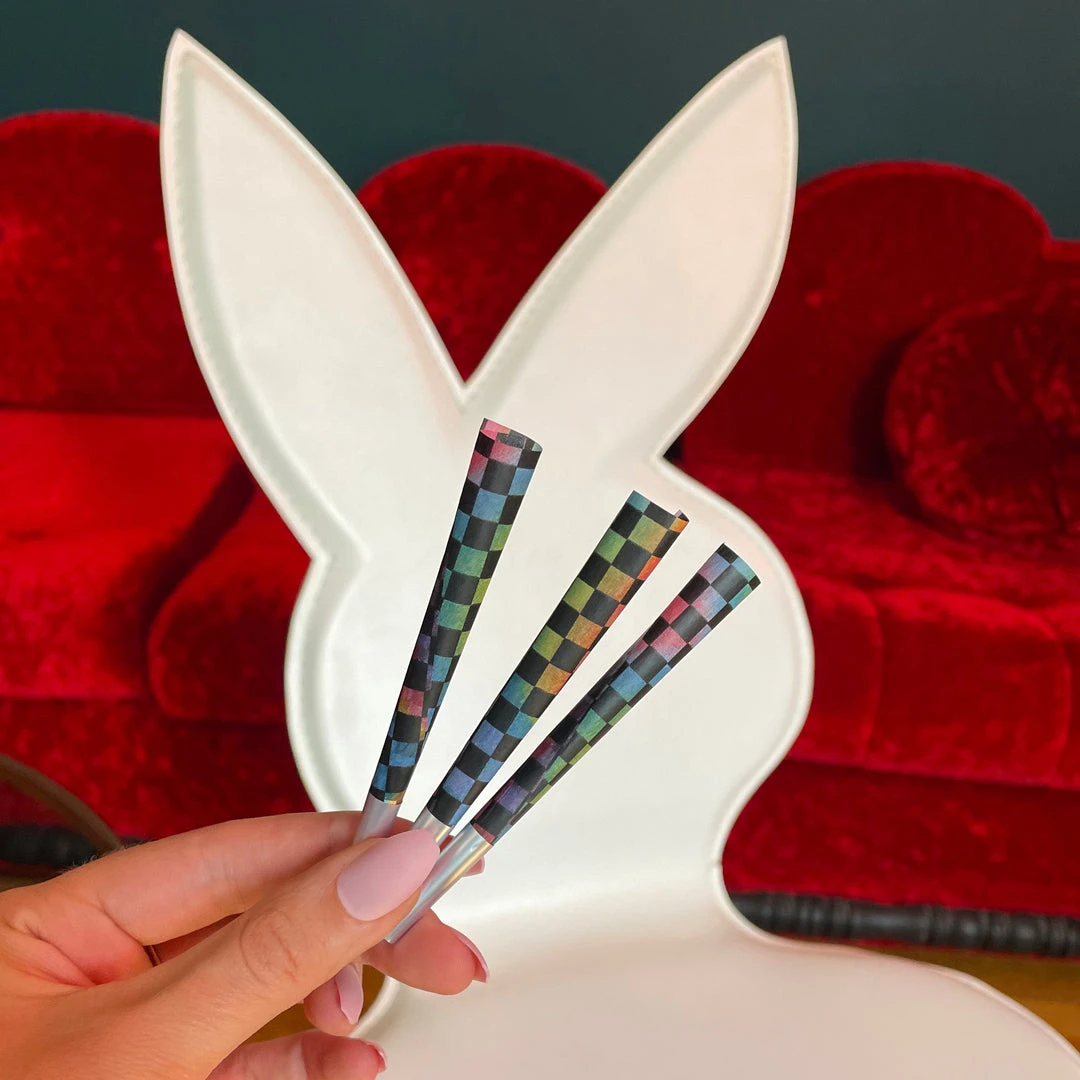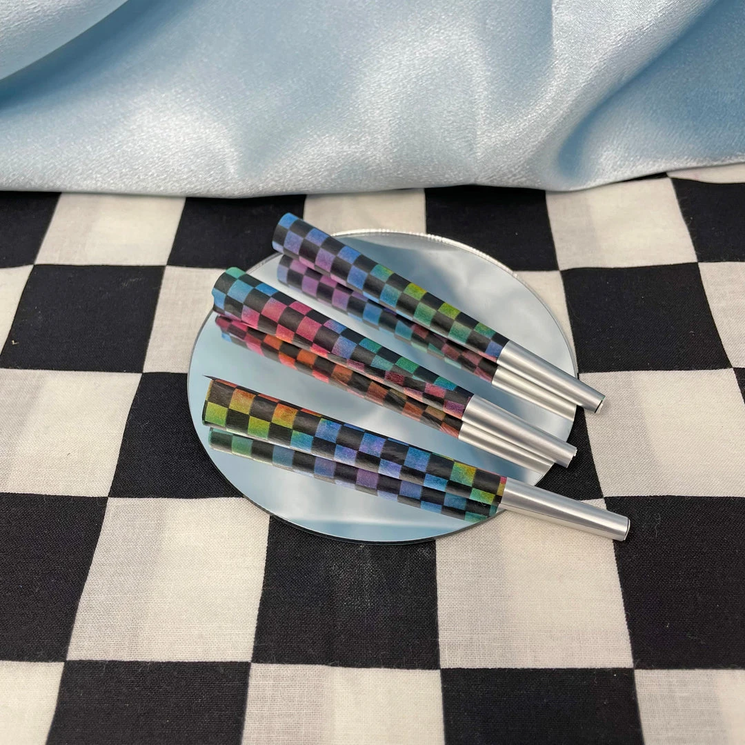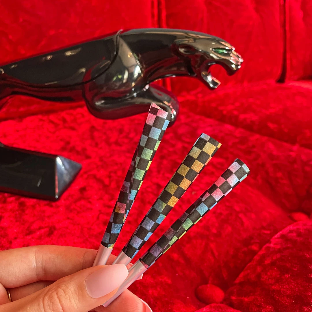 This listing is for the trippy checkerboard print cones. Classic checkerboard with a fun rainbow running through and a fun silver tip!