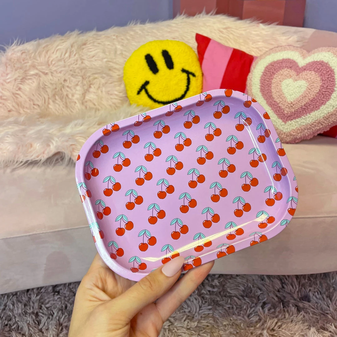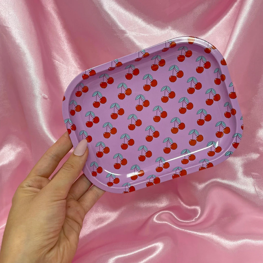 Covered in cherries, this tray is perf for rolling or as a lil trinket tray around your home.