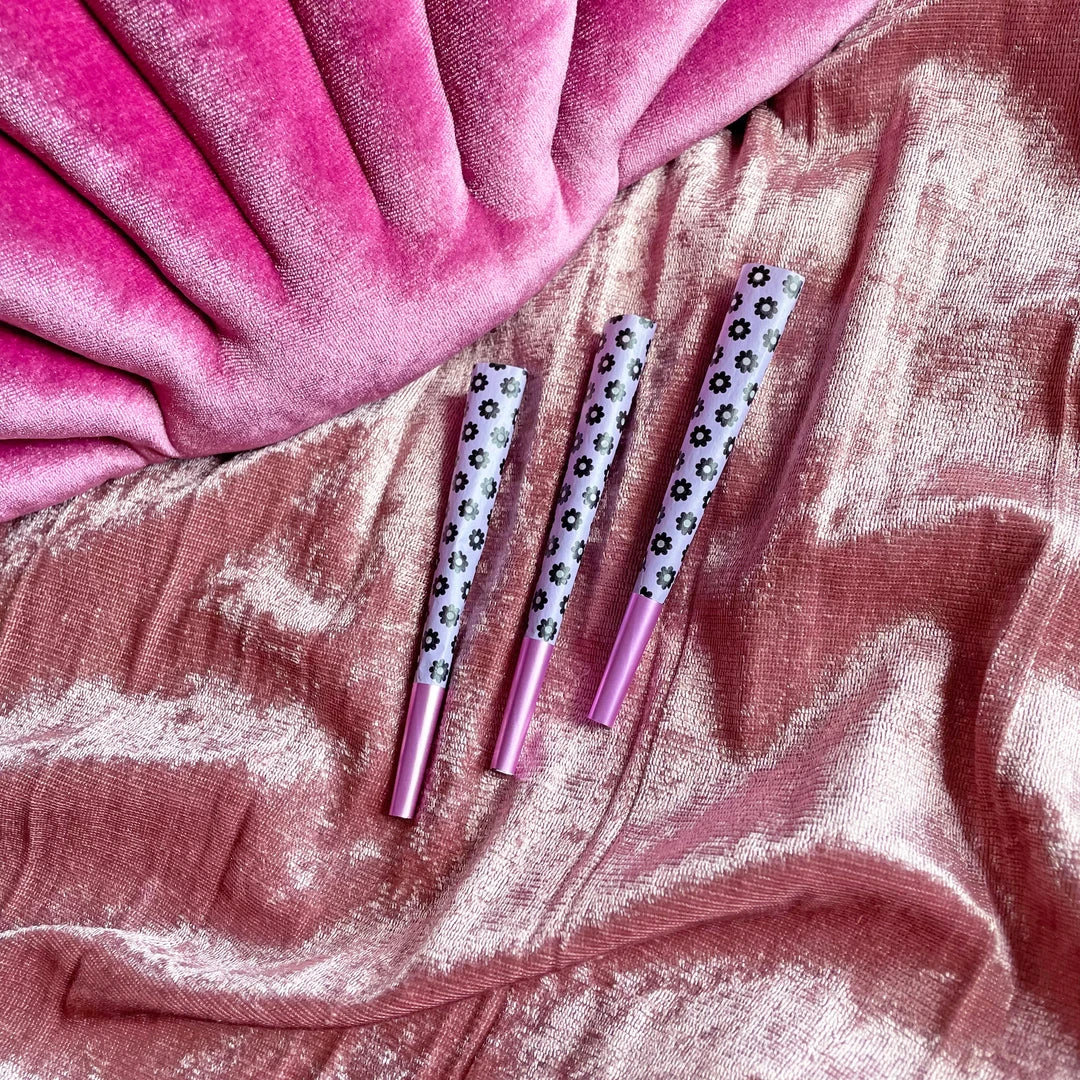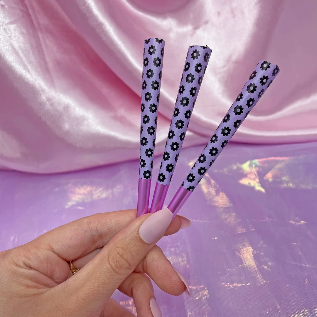 More about how this product is made: the paper in the cones are made from a slow burning natural palm pulp or hemp rolling paper. The printing pigment is derived from edible hempseed, soy oils and natural pigments. They are processed without chemicals and are naturally white. The tip is made with foodsafe non-plastic material. The food grade foil tip remains cool while smoking. These cones have passed California category III testing and are free from contamination. Cones are free from pesticides, resins, heavy metals and biological contaminants. Enjoy!
