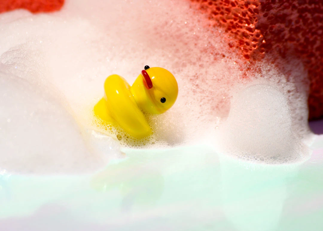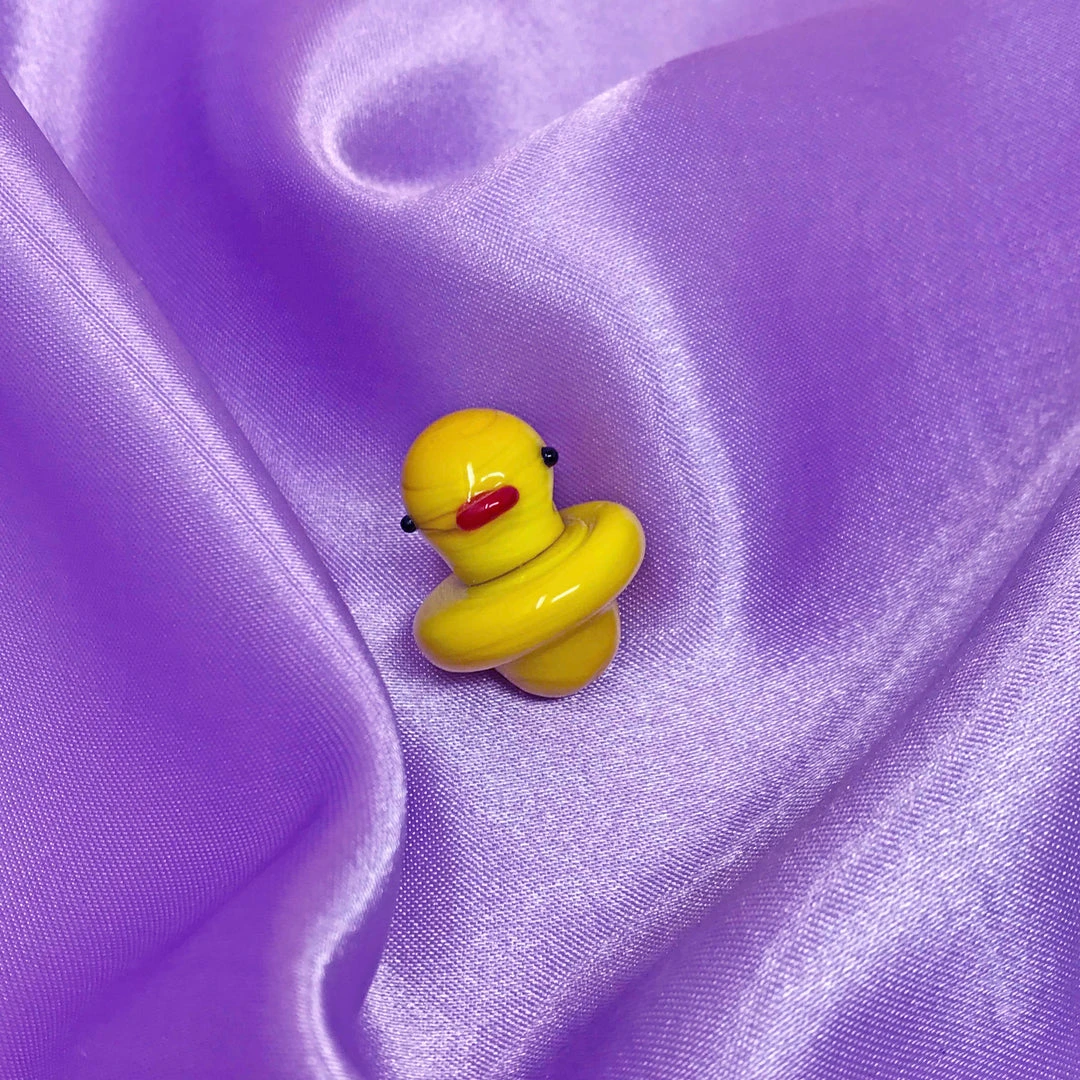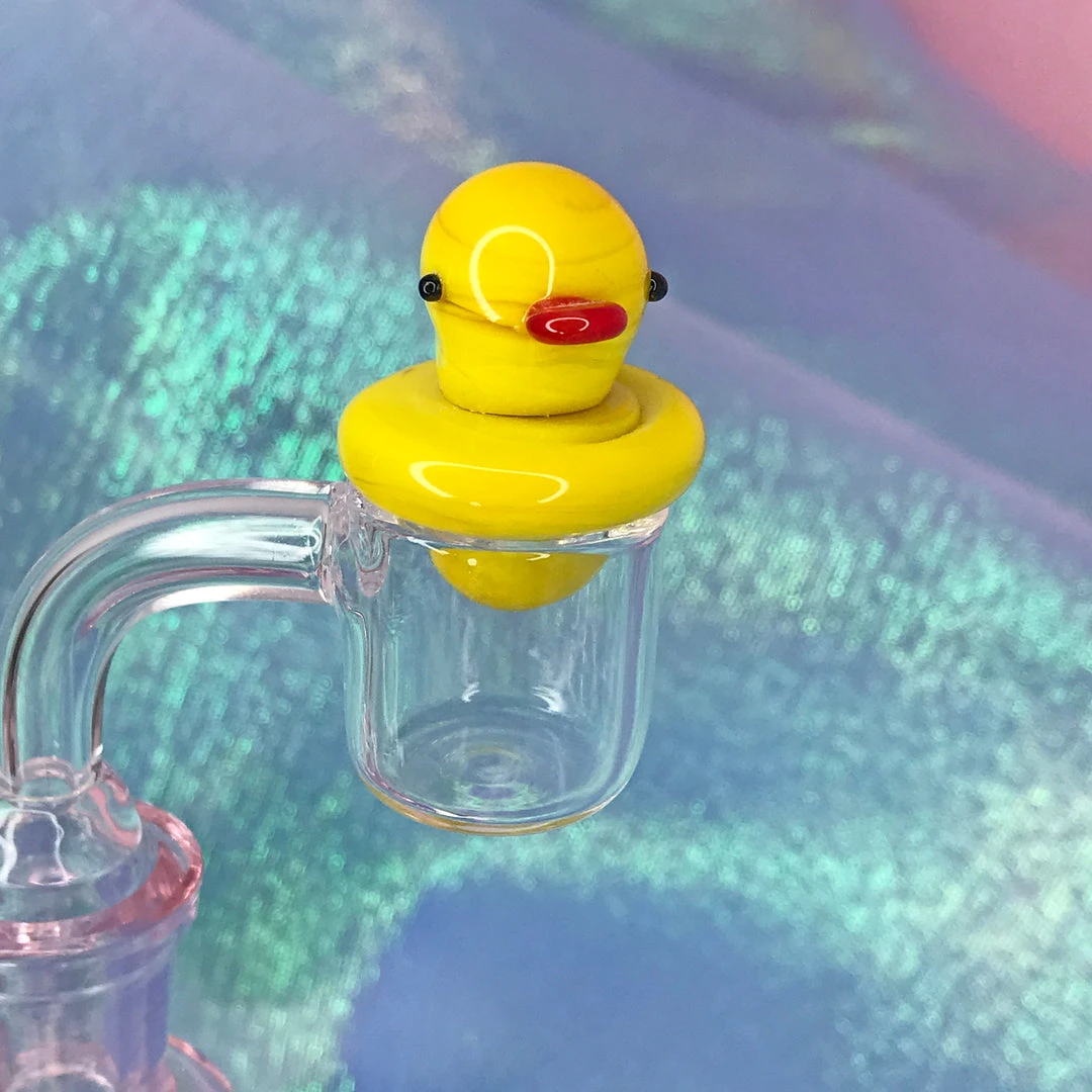 This cutie carb cap is shaped like a yellow rubber ducky and is made of borosilicate glass.