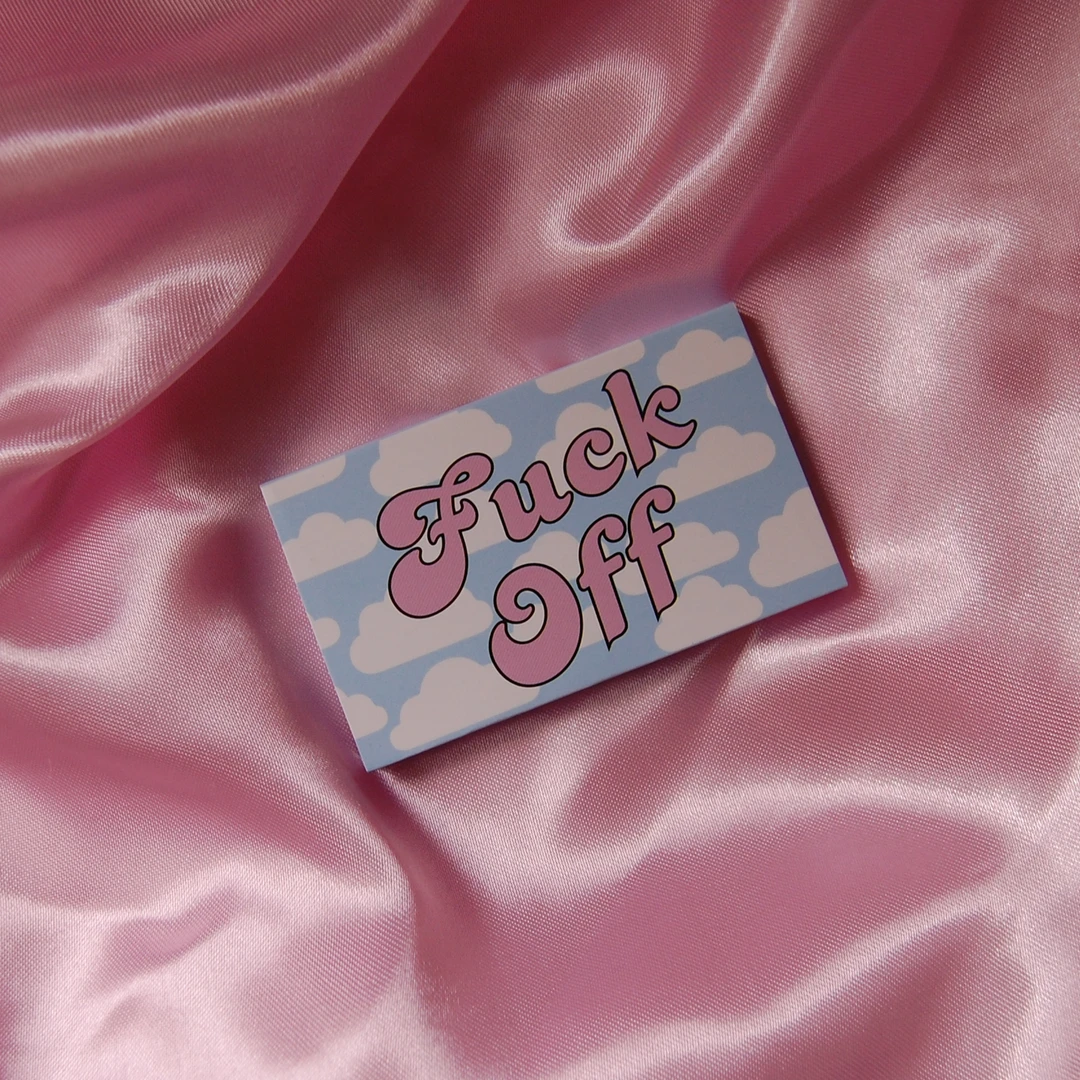 Fuck Off rolling papers come in a handy magnetic pack. The magnet keeps the pack shut for safekeeping.