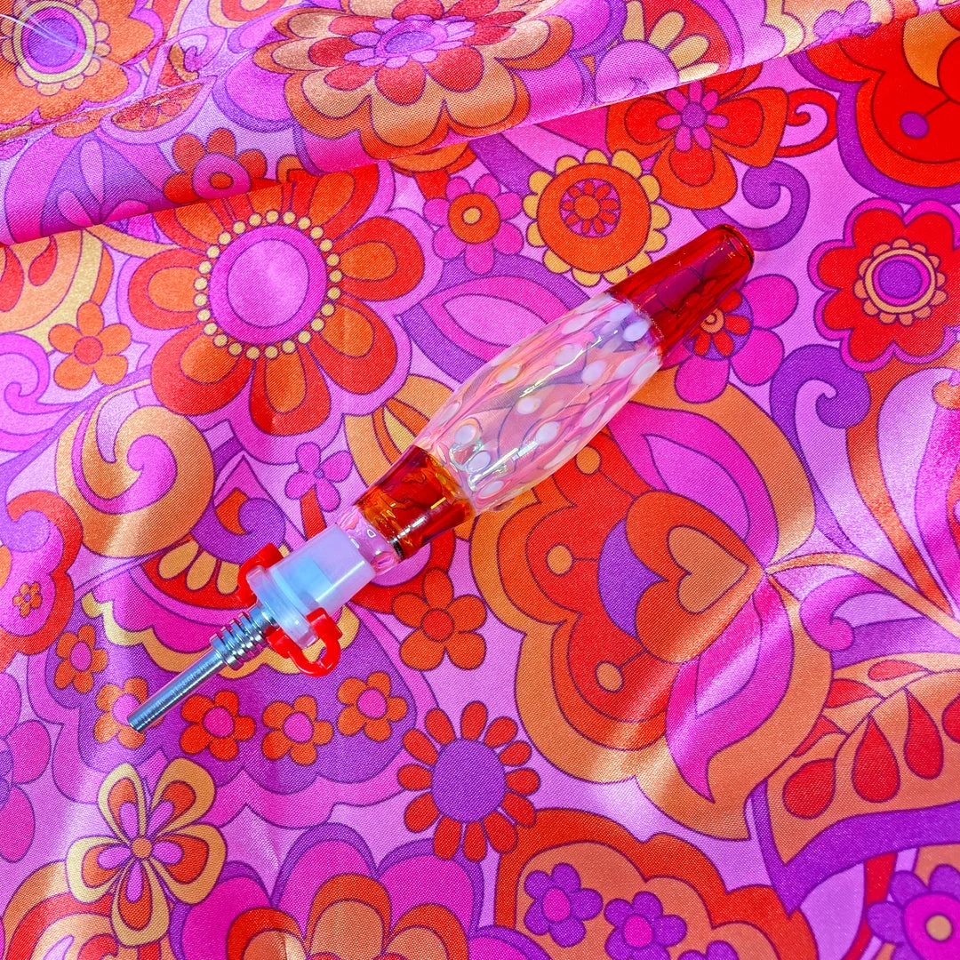 This dab straw is exactly what your sesh has been missing. Straw is shaped like a lava lamp!! Straw is made of borosilicate glass and straw tip is made of titanium.