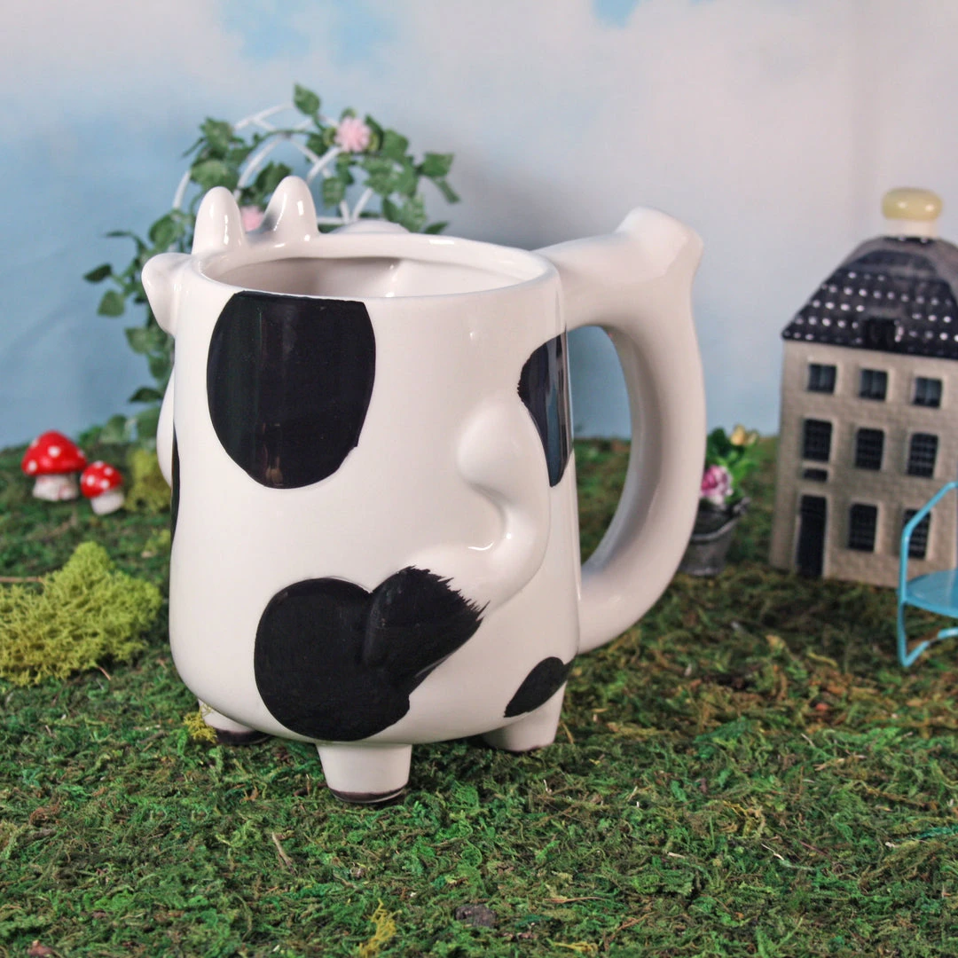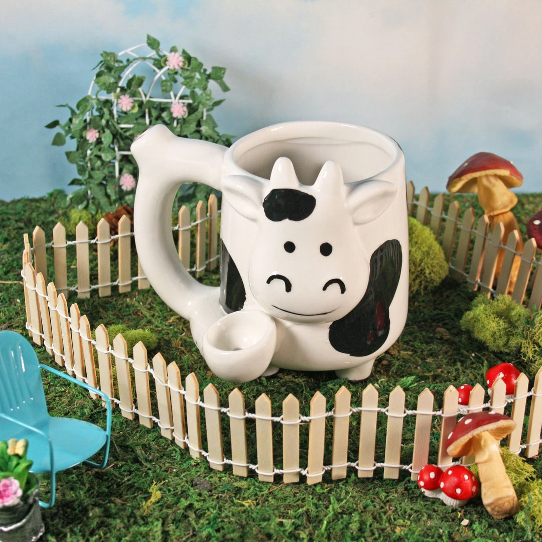 This piece is made of ceramic and features an 18 oz mug for your favorite liquid! The handle of the mug is hollow and has a pipe with a carb in the front and a mouthpiece on the top. You get the idea!