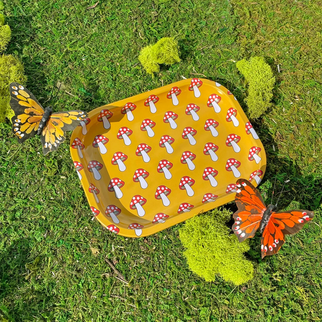 Covered in lil mushrooms, this tray is perf for rolling or as a lil trinket tray around your home.