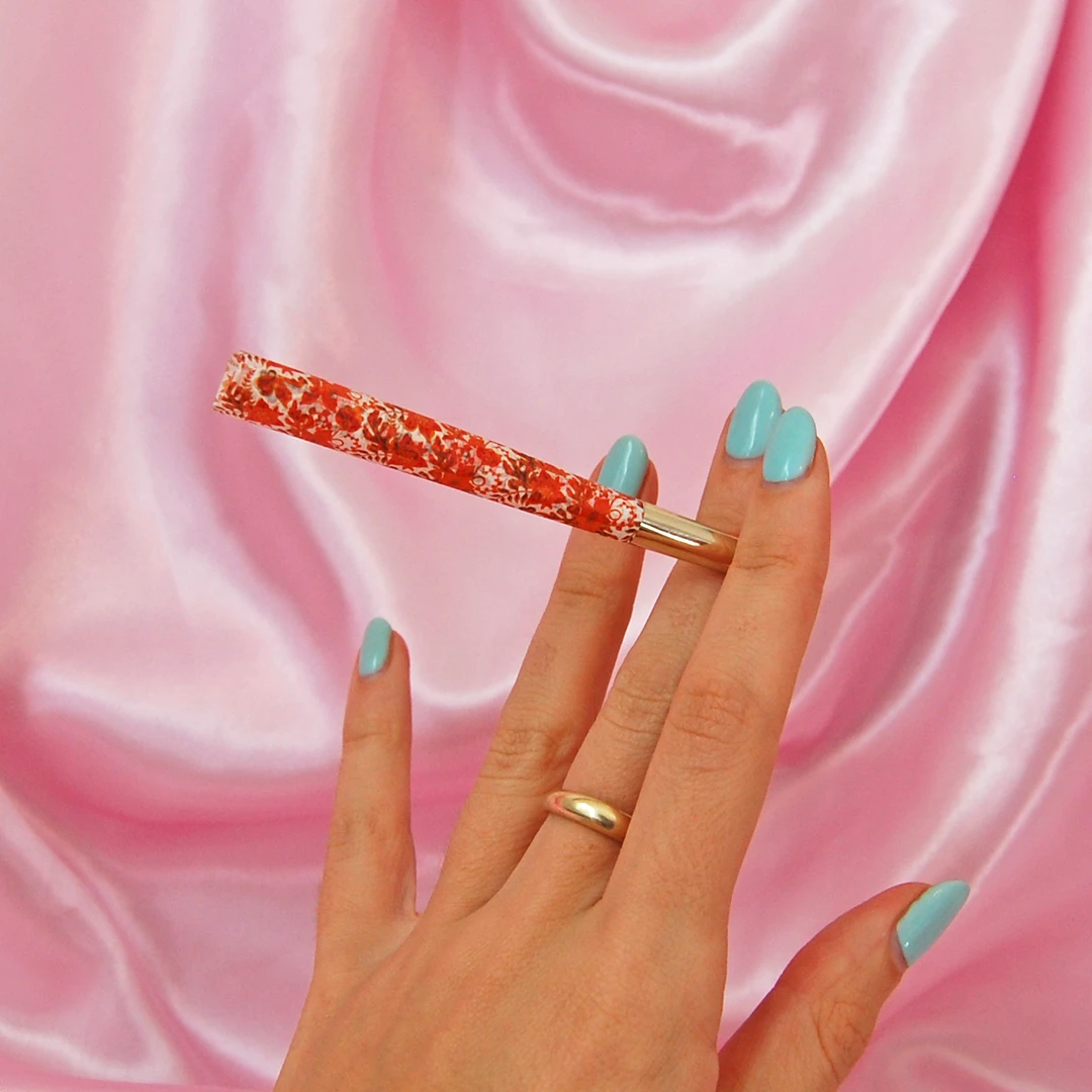 Cones are naturally white and are printed all over with a retro inspired orange paisley 🙂