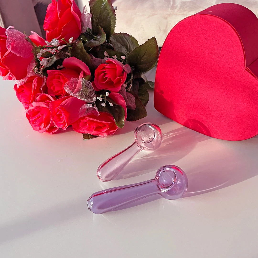 Can’t help but thinking about 90s inflatable furniture when I see this pipe! These cuties are medium sized pipes made of translucent pink glass. Each pipe also has a flat bottom under the bowl to keep it from rolling 🙂