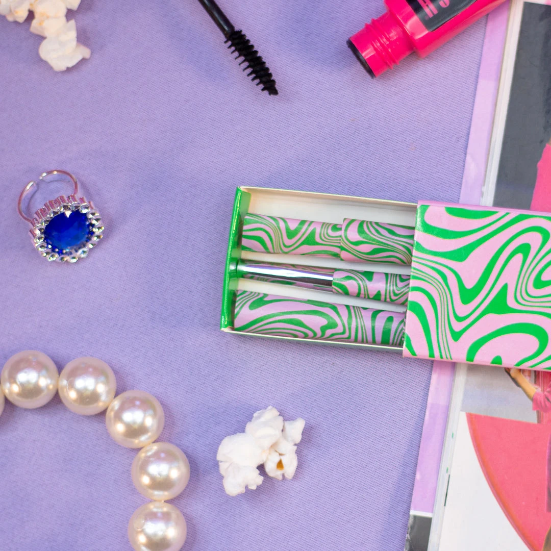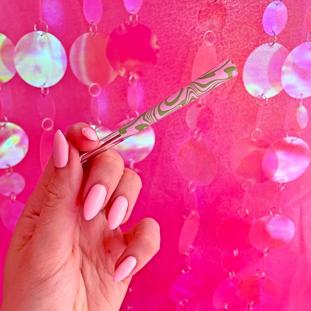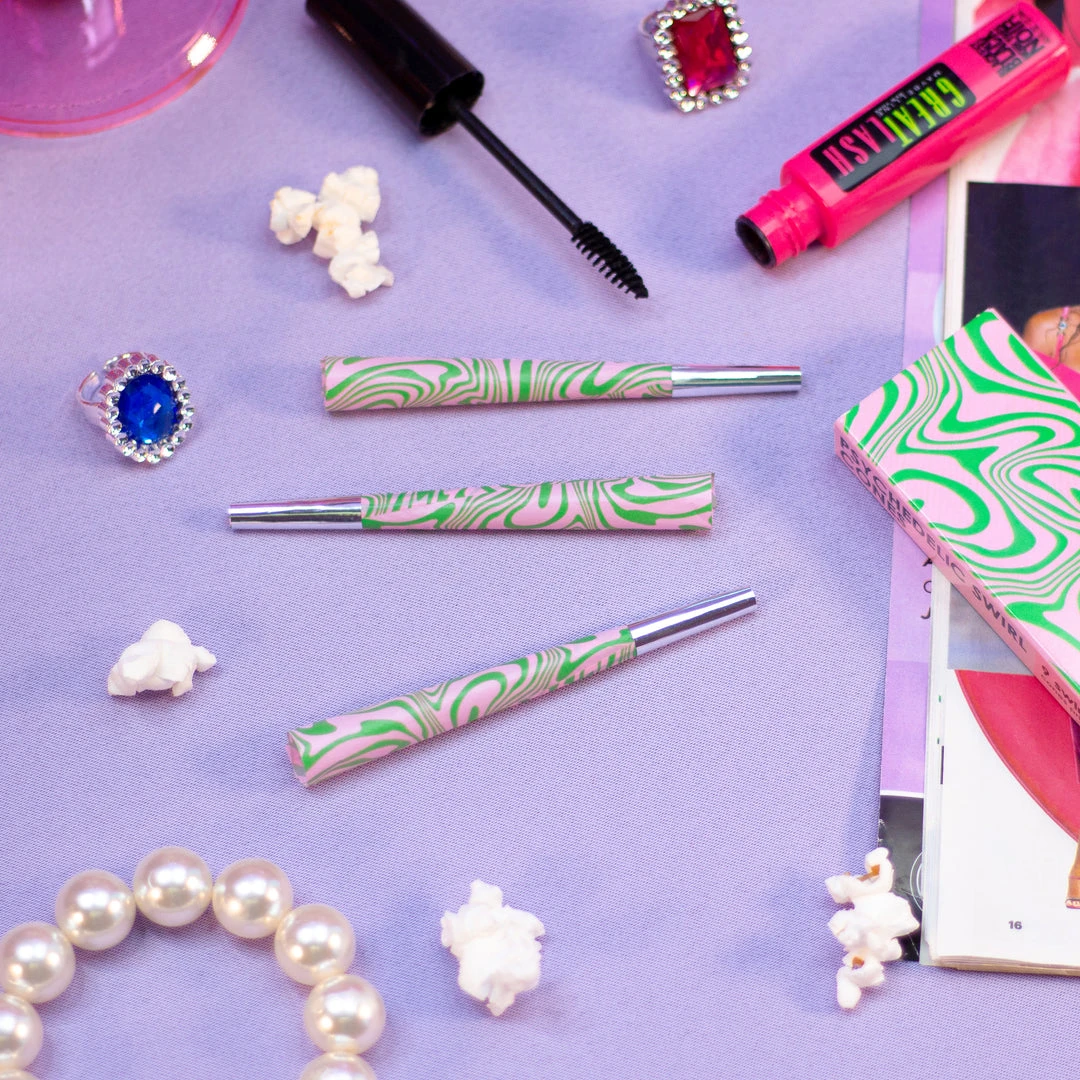 This is the print of the season!! Green and pink swirls and a silver tip? Sign me up!