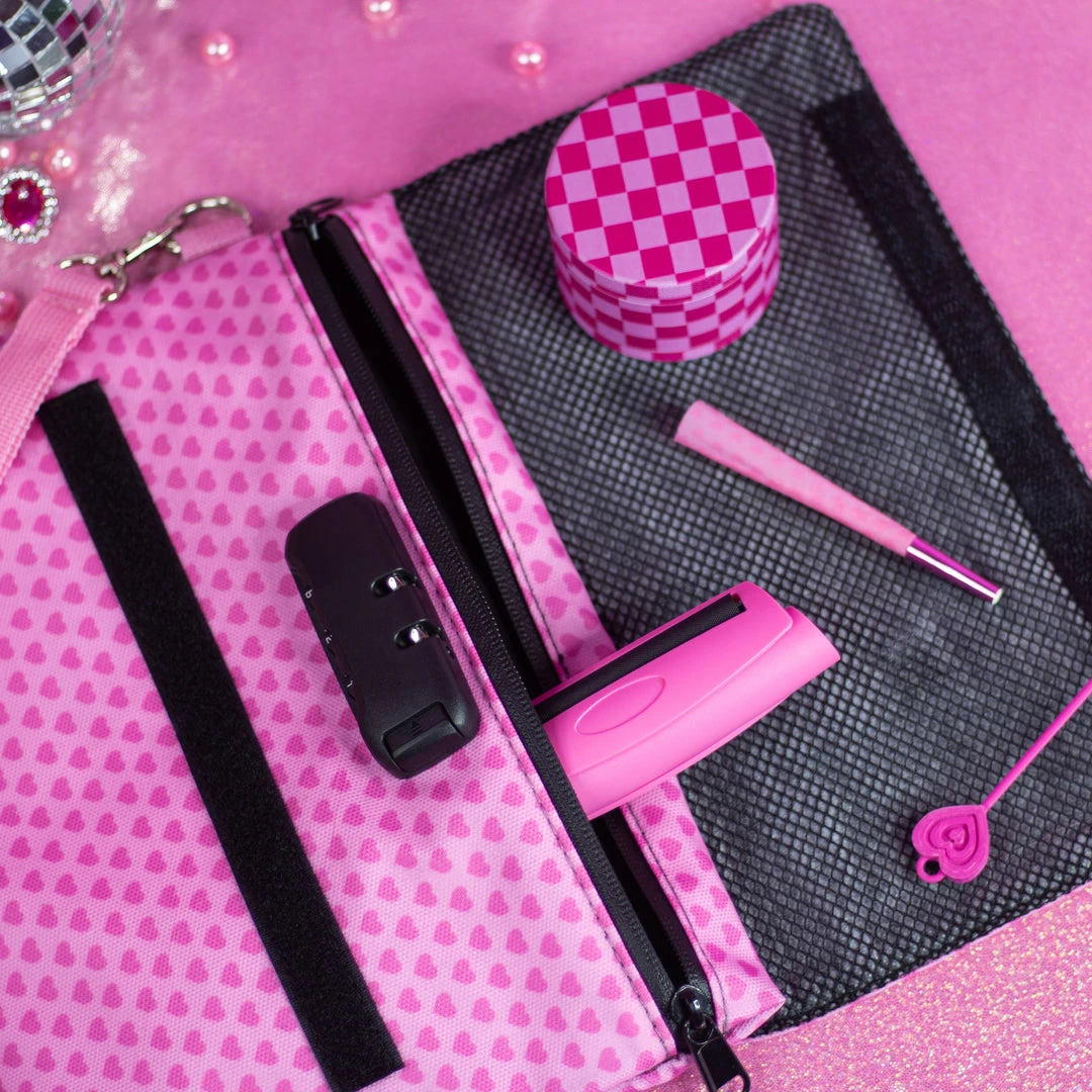 This bag has got it all- it’s smell proof and waterproof. Inside the bag there’s two side pockets in addition to the main pocket. The bag can be sealed with velcro and a zipper and comes with a lock so your goods stay extra safe. The bag’s even got a wristlet strap.