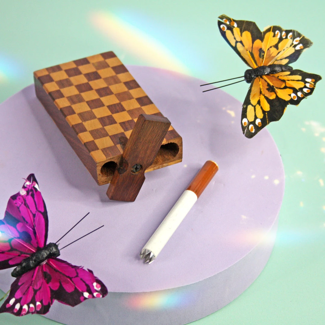 These dugouts are made of wood and covered in a checker board print. ! They measure 4″ x 2″